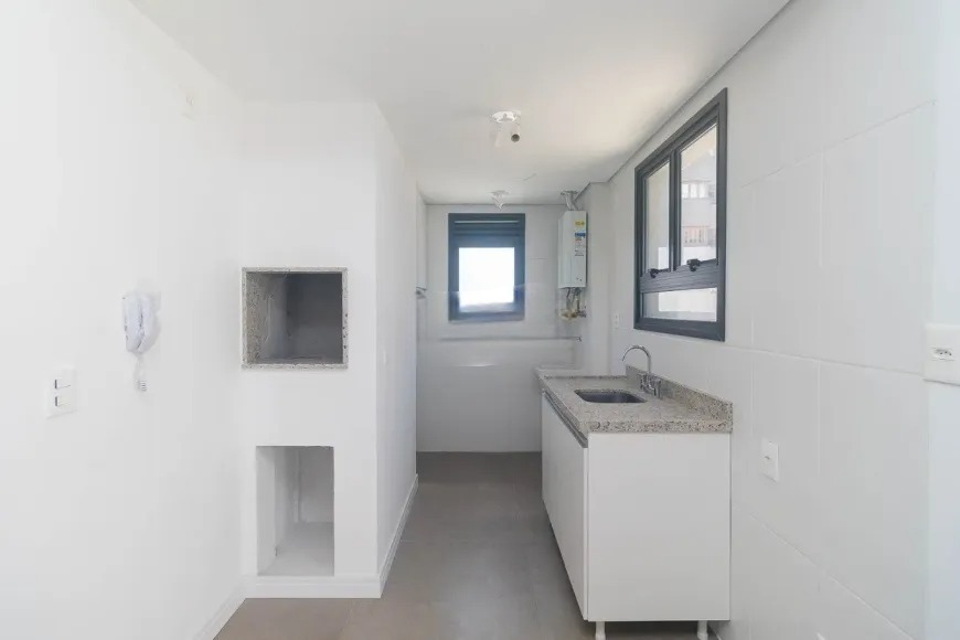 Apartamento de 106m² privativos com excelente distribuição, oferecendo living para dois ambientes integrado à sacada com pátio externo, proporcionando amplitude e ventilação. Conta com cozinha equipada com pia, balcão e churrasqueira, área de serviço independente e 2 dormitórios, sendo 1 suíte, além de banheiro social completo. Possui vaga de garagem e posição solar sul.
