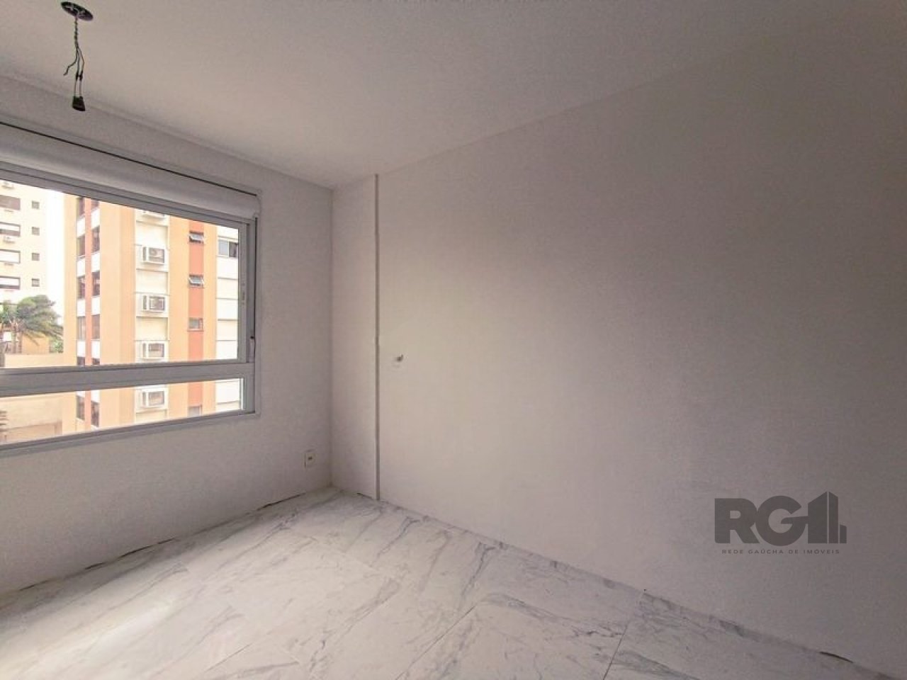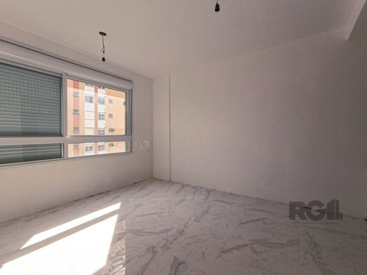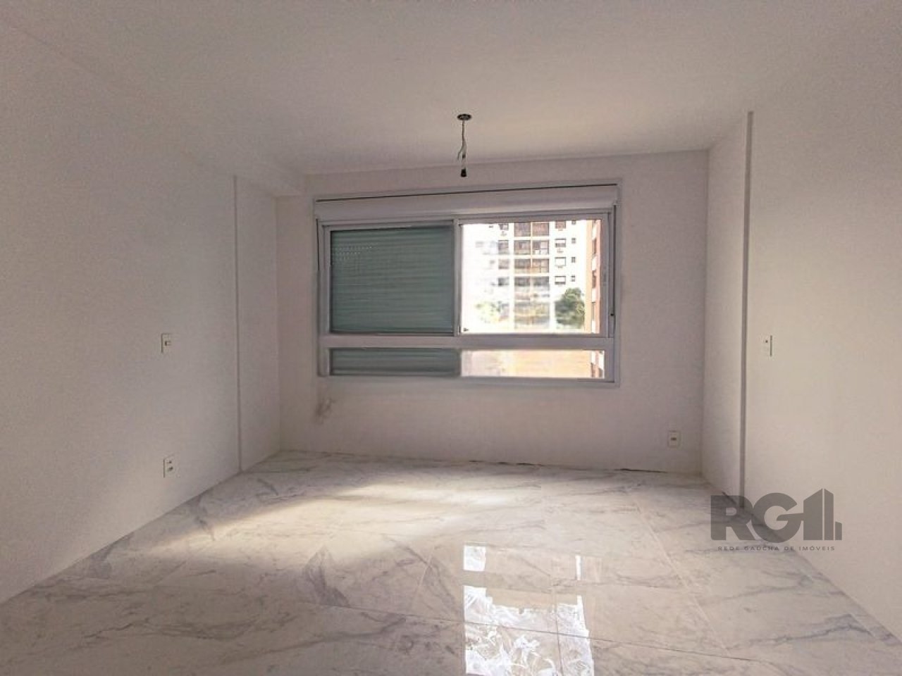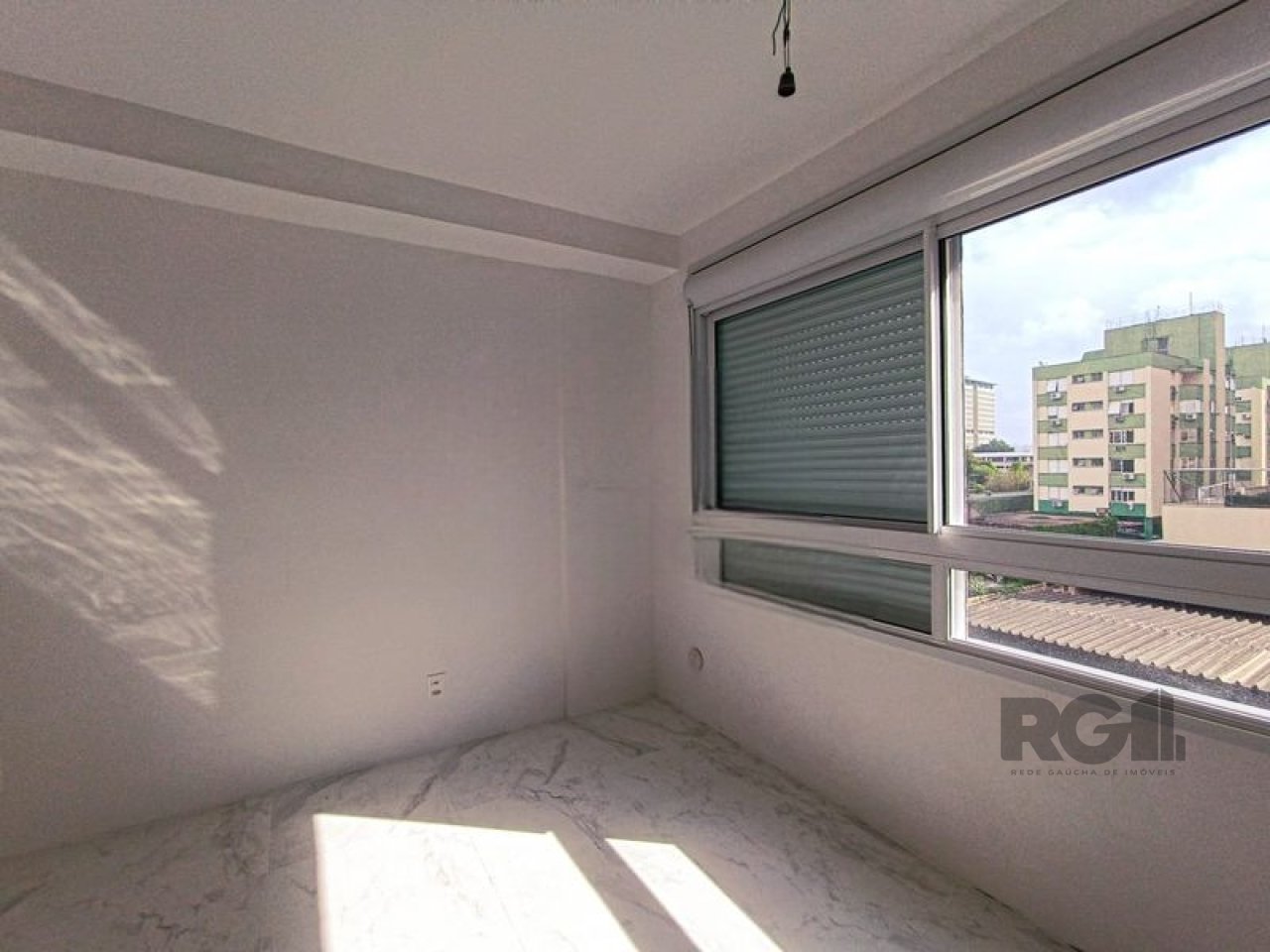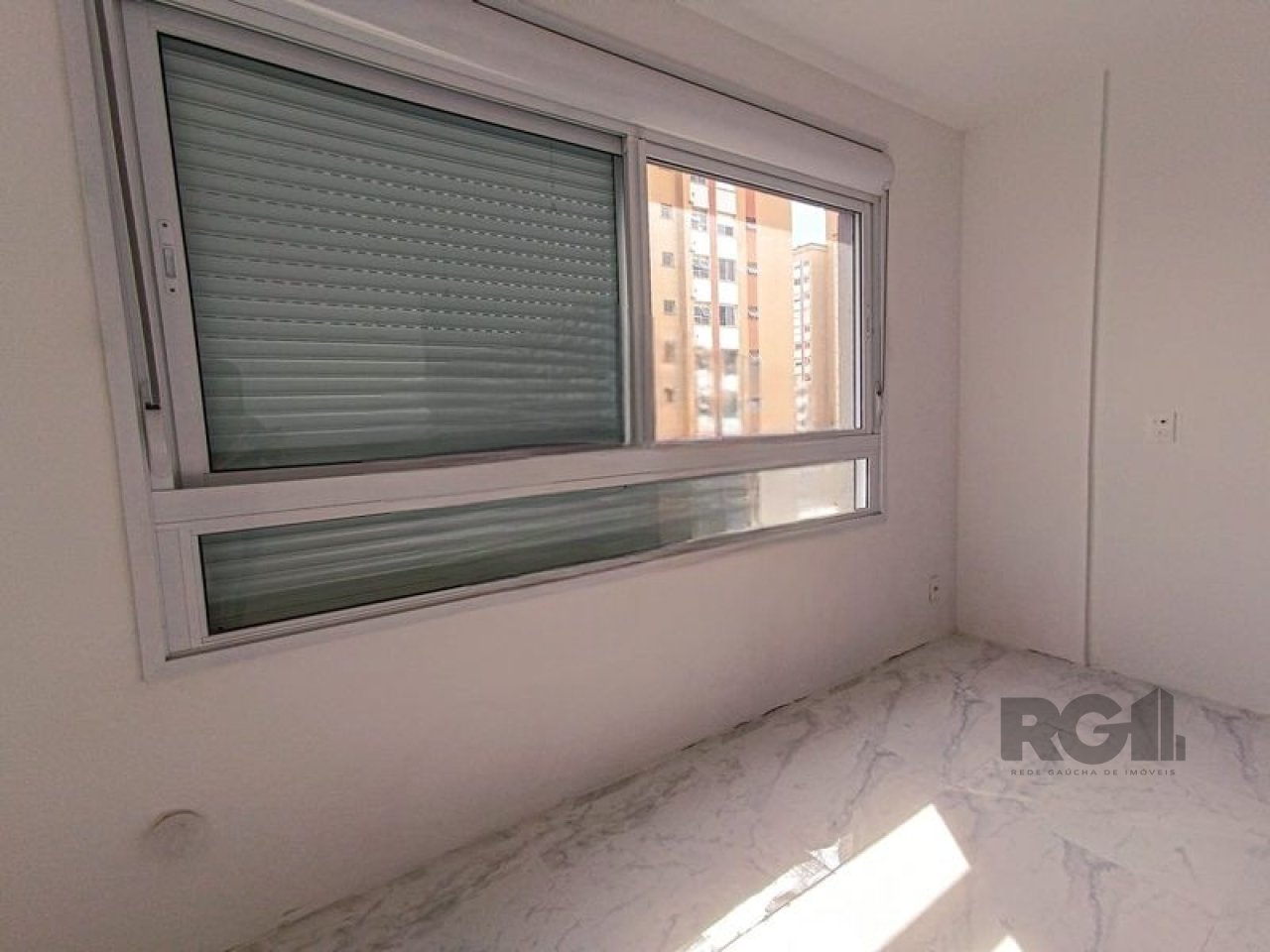 A unidade possui piso de porcelanato, janela com iluminação natural e sol da tarde.