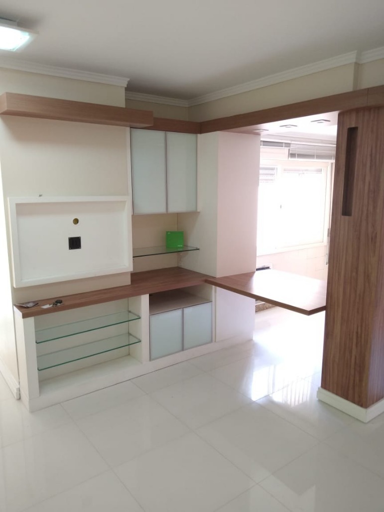 Apartamento de 1 dormitório, conta com living com armários, cozinha americana equipada com pia, armários, ar-condicionado e aquecedor. O dormitório possui split e armários, e o banheiro social dispõe de box em vidro. Piso em porcelanato em todo o imóvel e 1 vaga de garagem.
