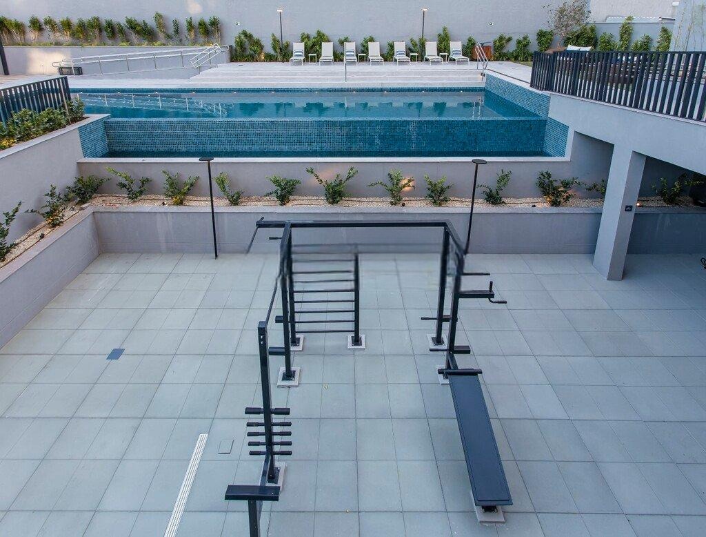 O condomínio oferece infraestrutura completa, com elevadores, portaria 24 horas, sistema de monitoramento, piscina, academia, espaço gourmet, salão de festas, quiosque com churrasqueira e áreas de convivência. Conta ainda com aquecimento central, gás central, jardim e serviços de apoio que ampliam a comodidade dos moradores.