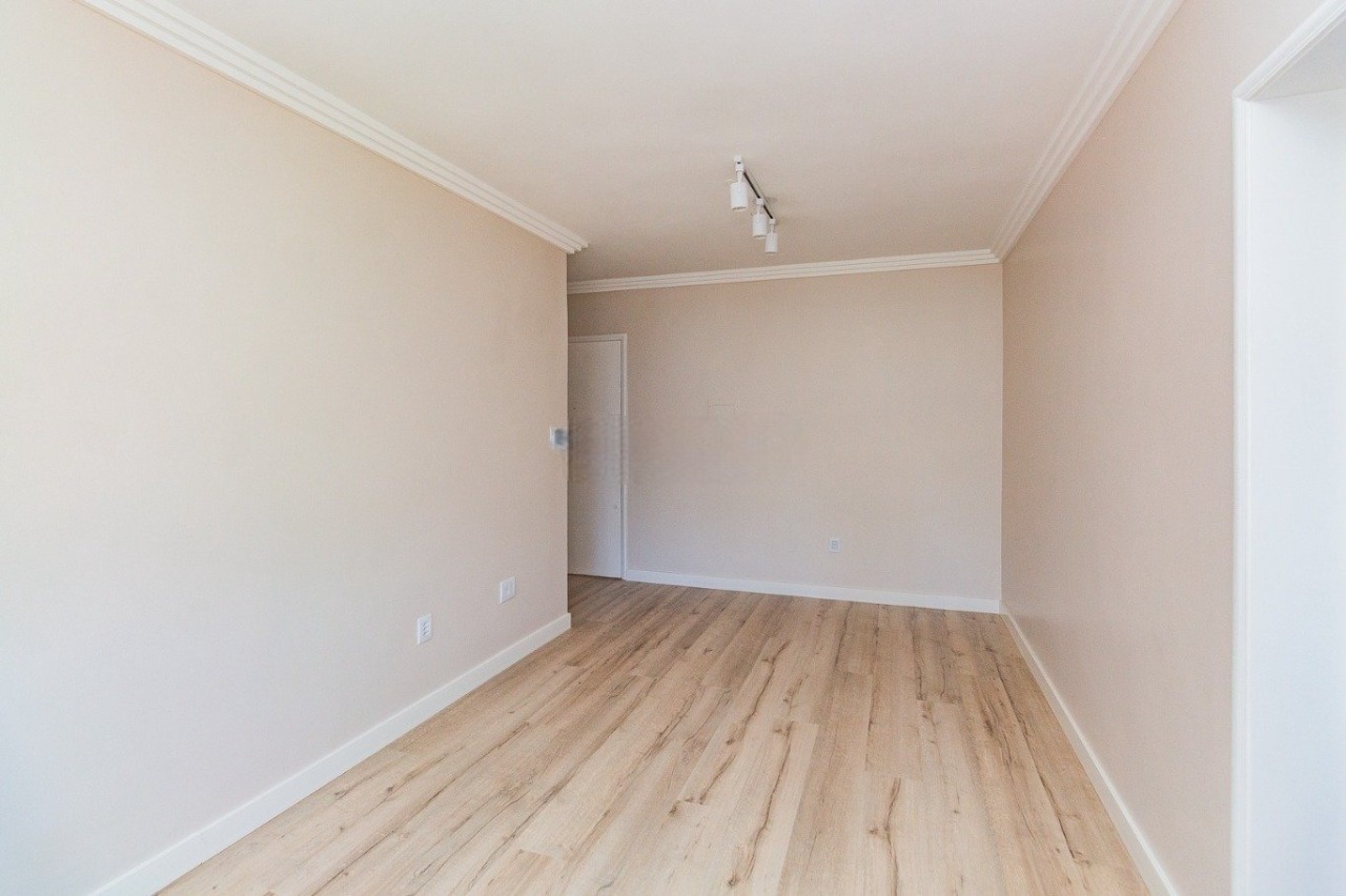Apartamento com 45 m² de área privativa, planta funcional e ambientes bem distribuídos. Conta com living para dois ambientes, cozinha com armários e eletrodomésticos, um dormitório com split, banheiro social e área de serviço separada. Orientação solar oeste, com boa iluminação natural no período da tarde.
