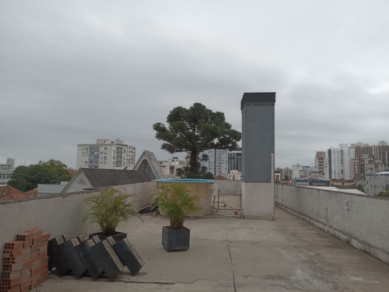 O edifício oferece espaço de convivência no terraço com rooftop, composto por piscina, churrasqueira e forno de pizza, proporcionando área de lazer e vista aberta para os moradores.