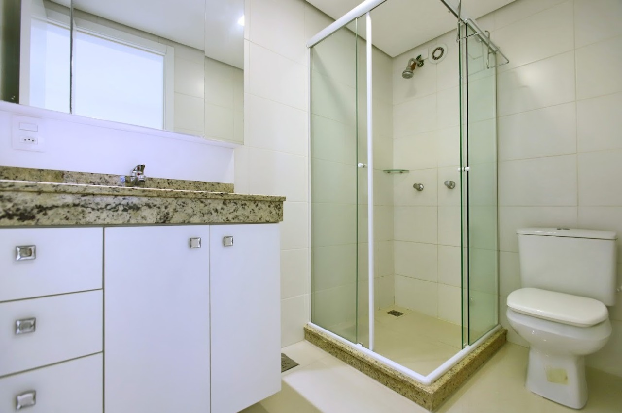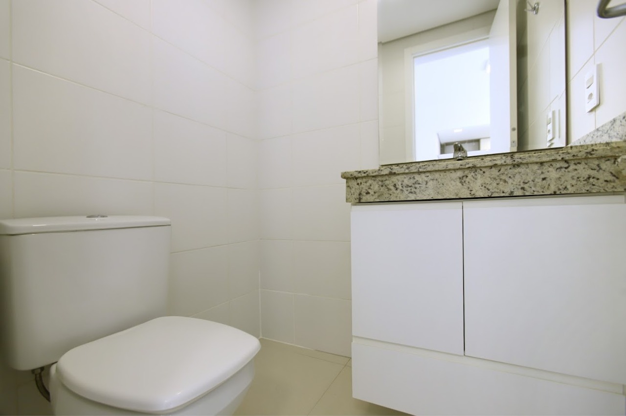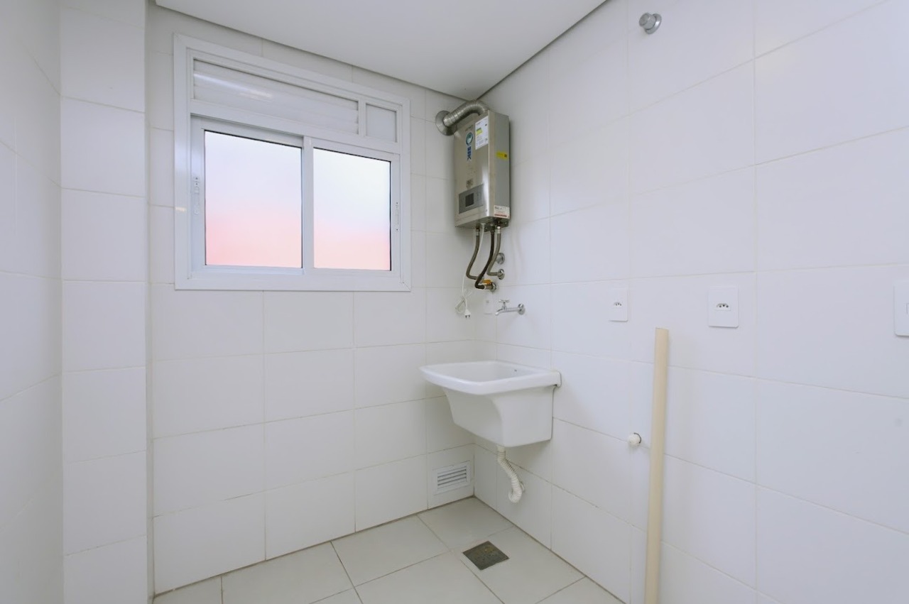 Apartamento com 1 dormitório, sendo 1 suíte, além de lavabo, totalizando dois banheiros. Possui living amplo e bem iluminado, cozinha com churrasqueira integrada e área de serviço. O imóvel conta com armários na cozinha, pia com tampo em granito, sistema de aquecimento com boiler/junkers e banheiros equipados com armários, sendo o da suíte com box instalado.