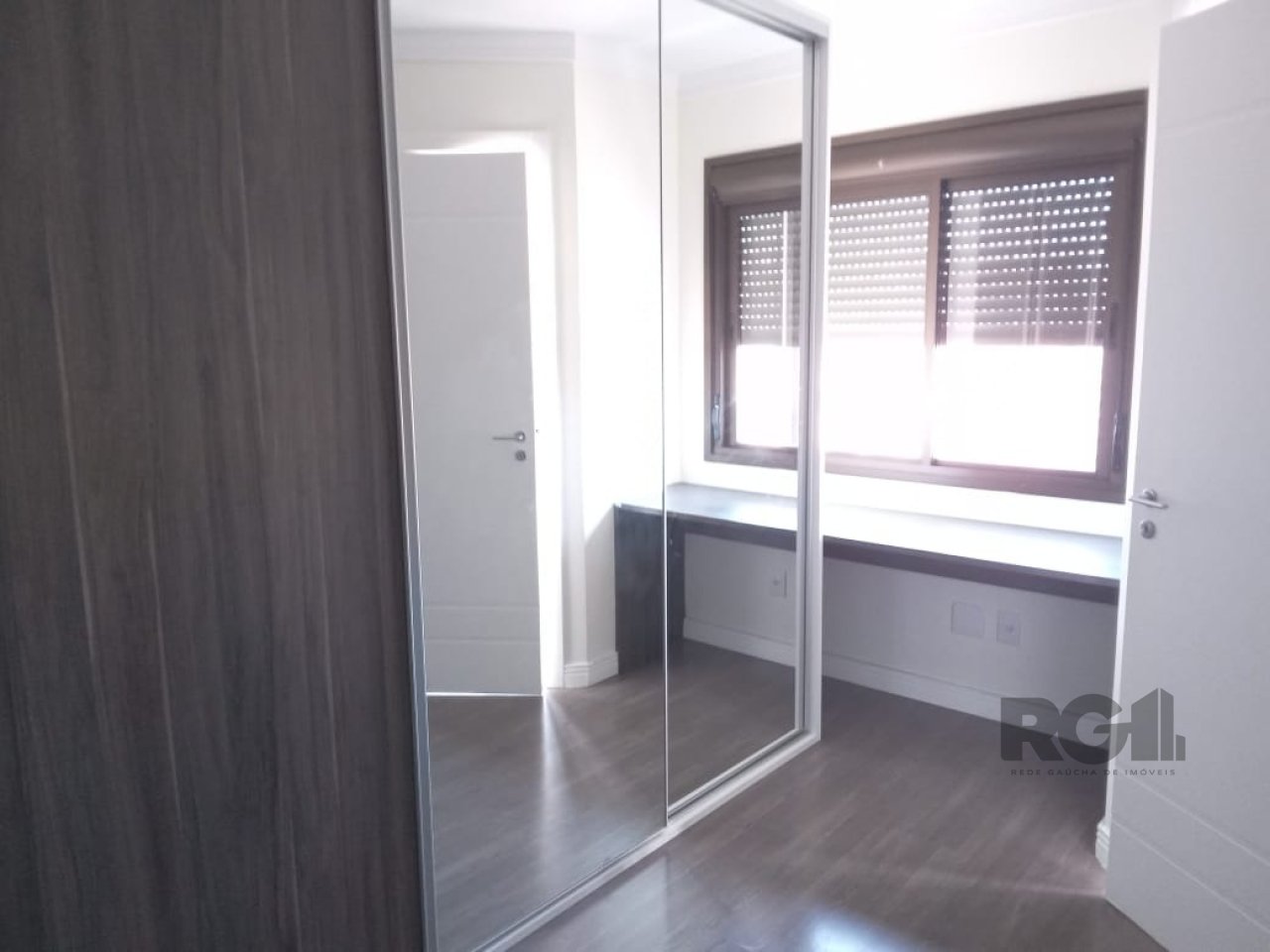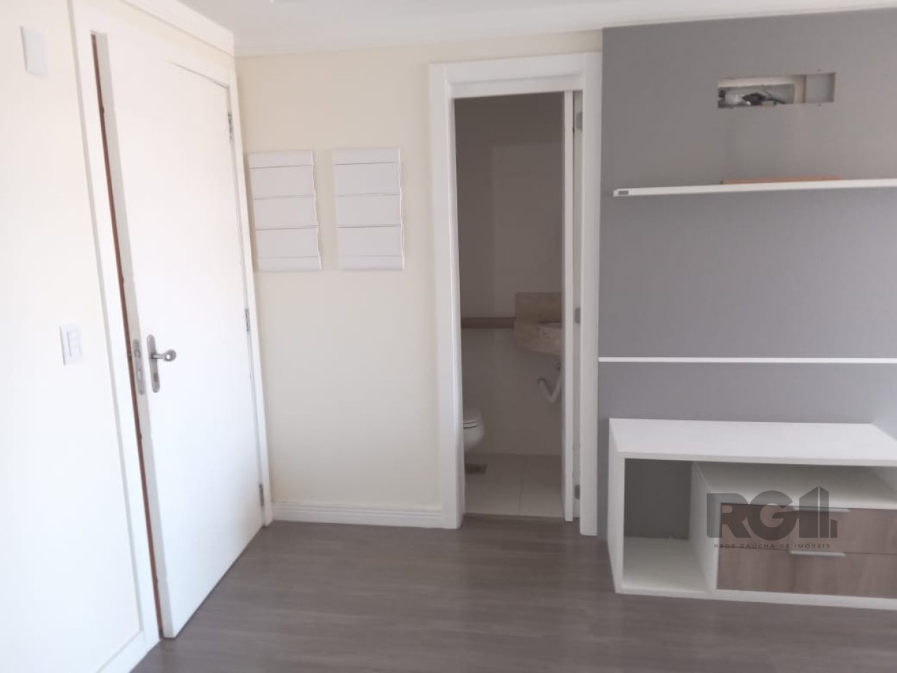 O dormitório conta com móveis novos, incluindo armários, criados-mudos e bancada para estudo, proporcionando um espaço confortável e bem aproveitado. O banheiro da suíte apresenta acabamentos em mármore e armários sob medida, unindo elegância e praticidade. O piso laminado contribui para um ambiente acolhedor e fácil de manter.