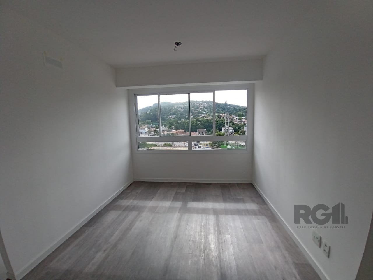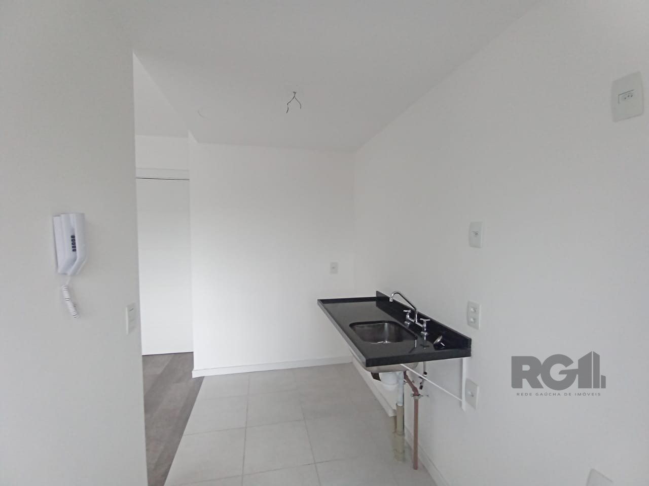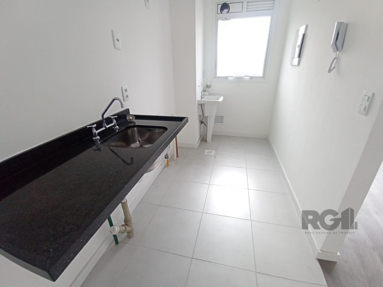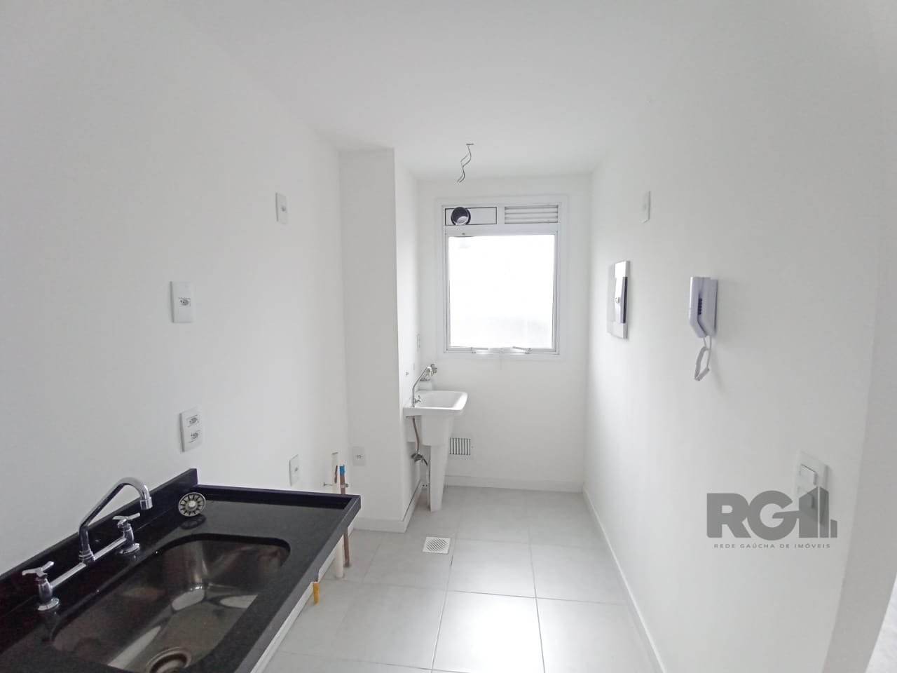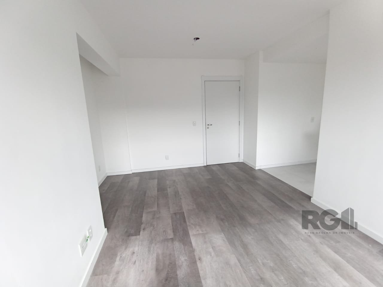 O imóvel oferece uma planta funcional com dois dormitórios, sendo um deles suíte, living integrado com dois ambientes, cozinha equipada com armários e pia, banheiro social, área de serviço e uma vaga de garagem descoberta.