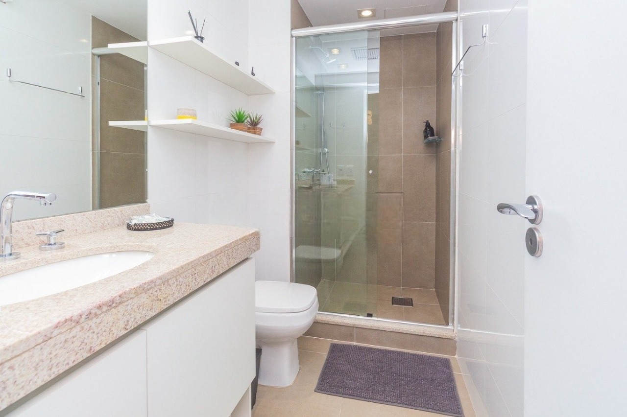 Condomínio com infraestrutura completa: portaria e vigilância 24h, elevador, gás central, piscina aquecida, academia, salão de jogos e playground.