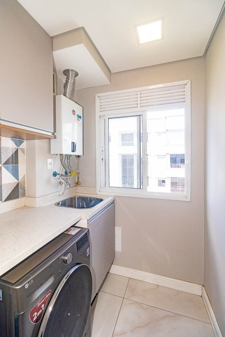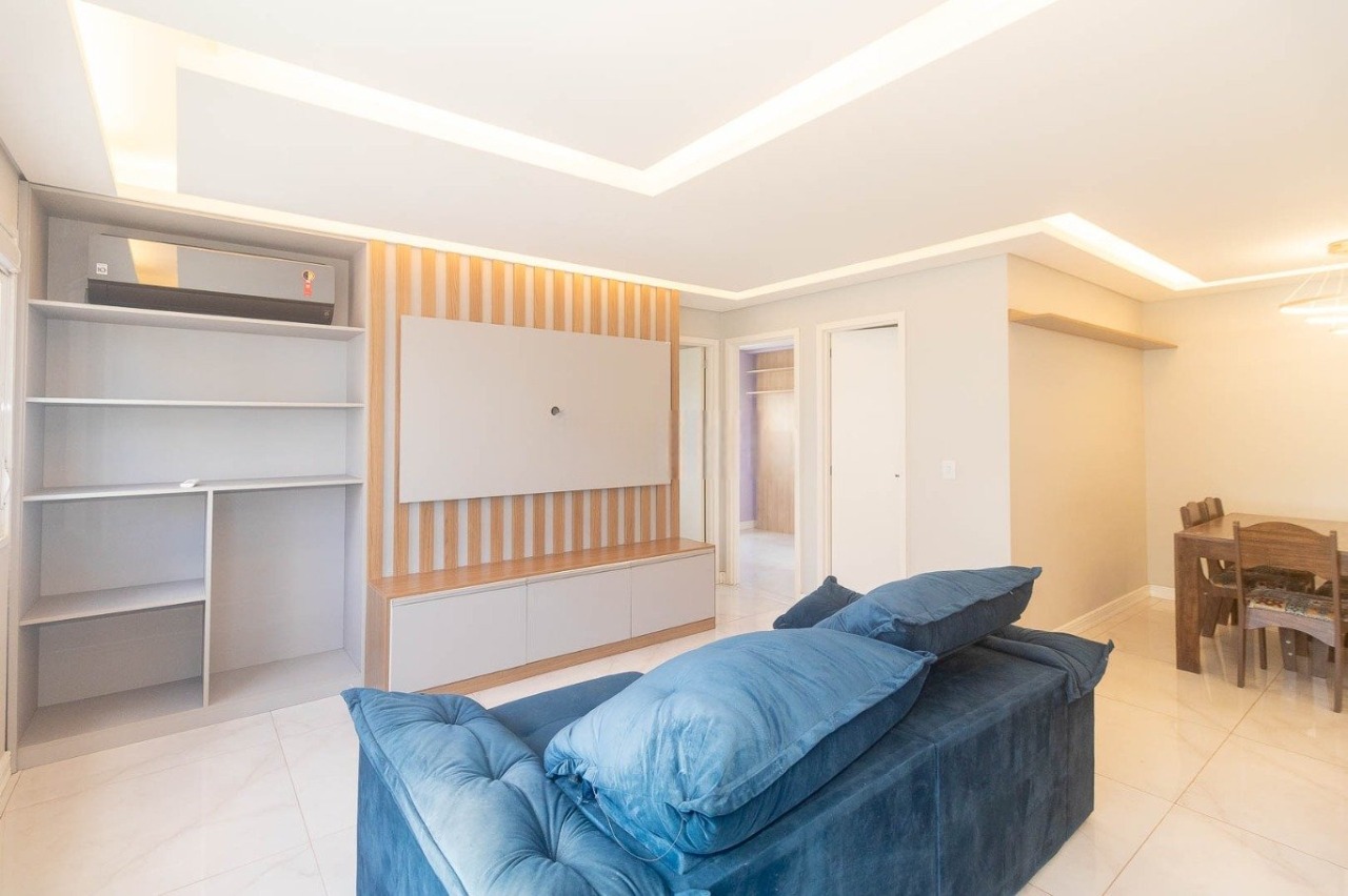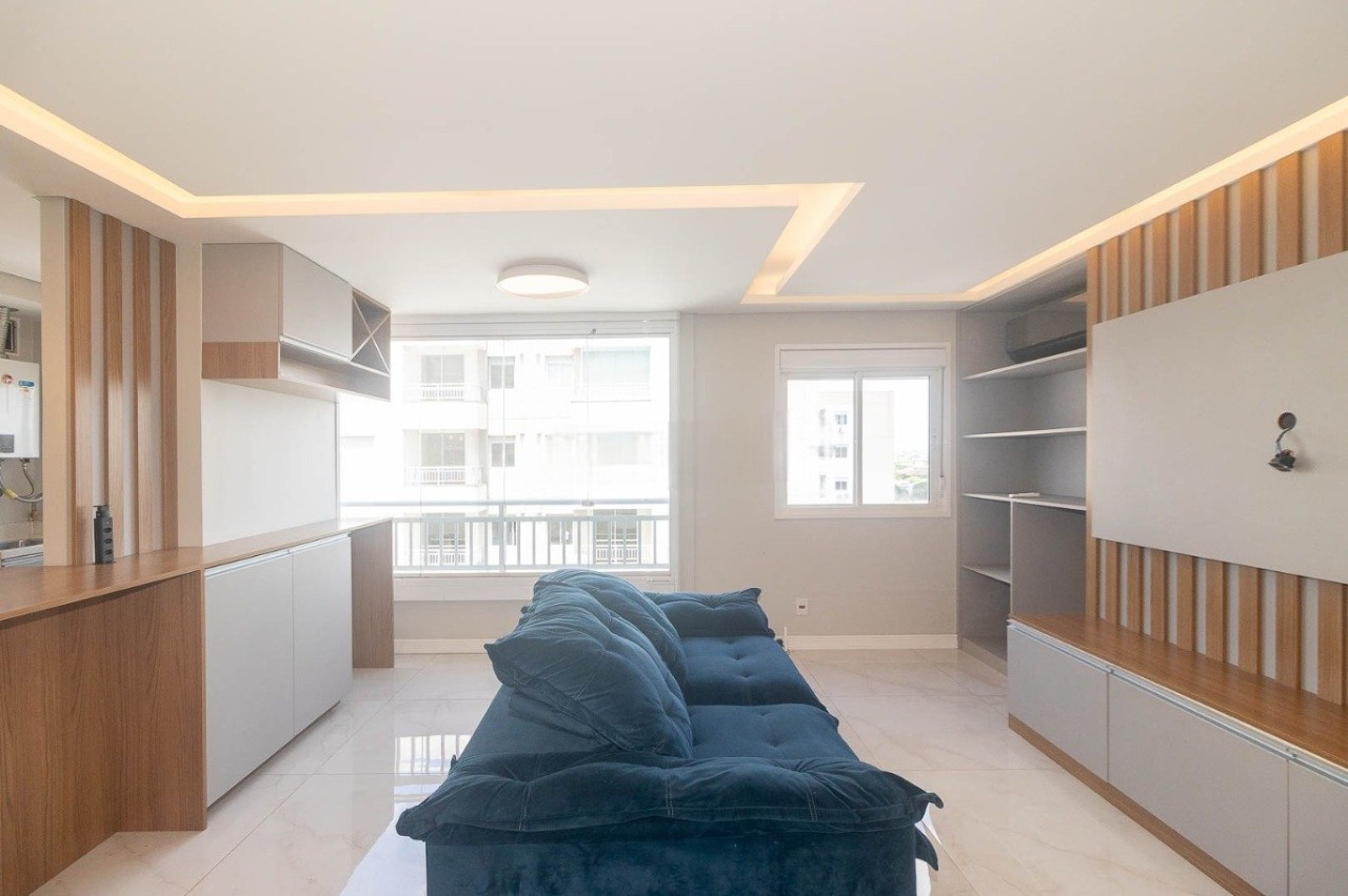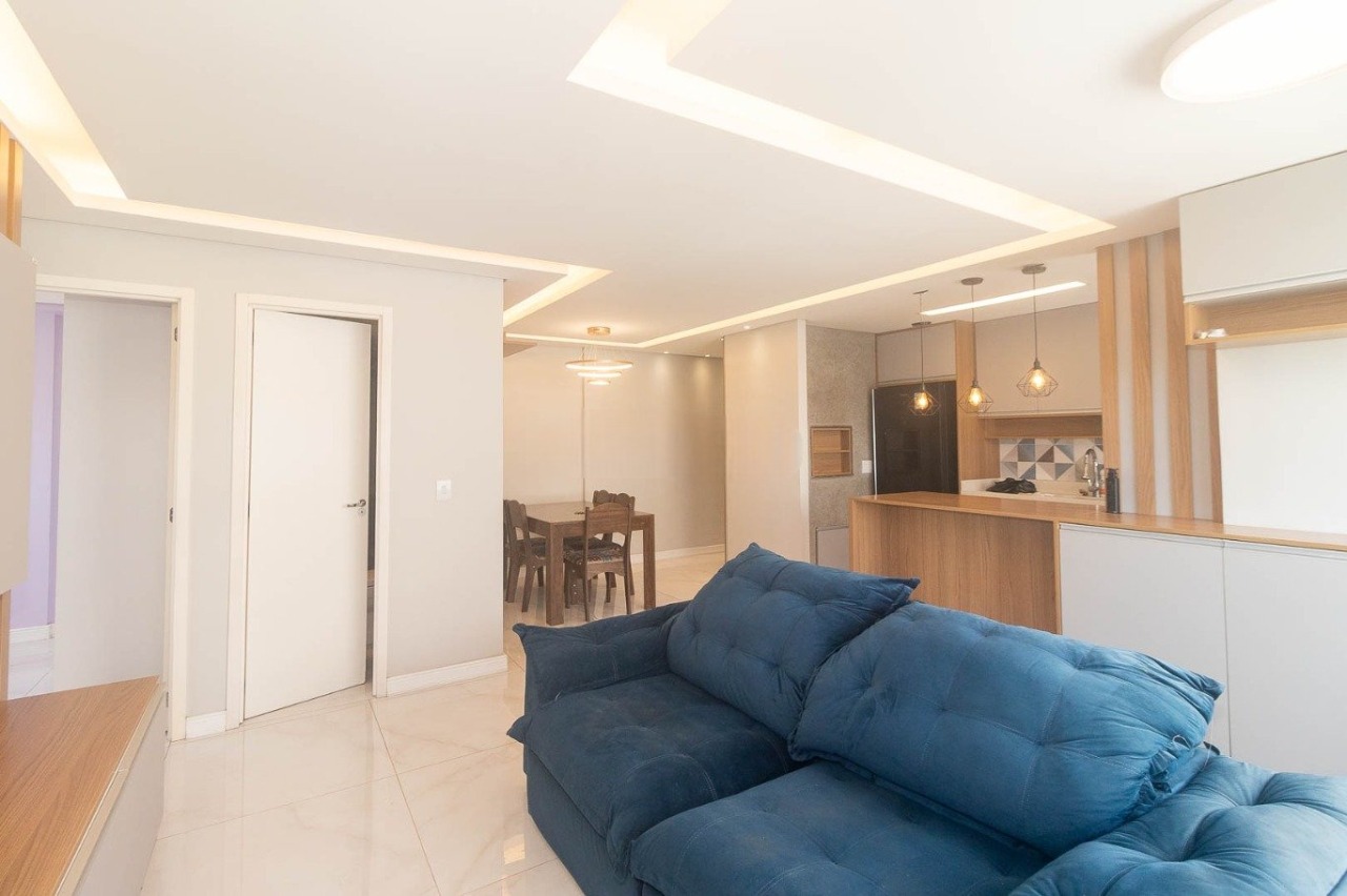 Apartamento com 65 m² de área privativa, composto por 2 dormitórios, sendo 1 suíte, 2 banheiros, living funcional com churrasqueira, cozinha integrada e área de serviço. Planta bem distribuída, com gás central, ideal para uso residencial prático.