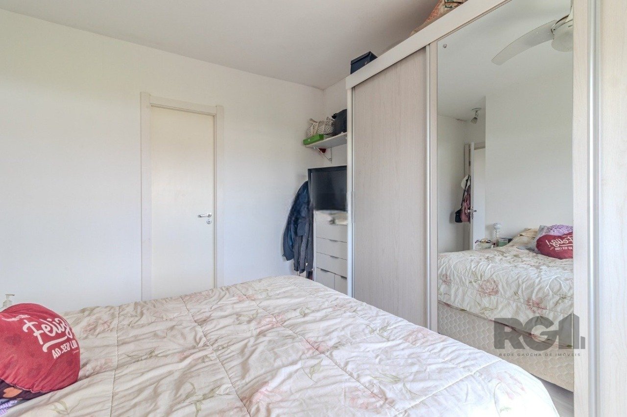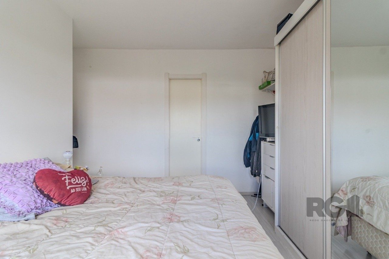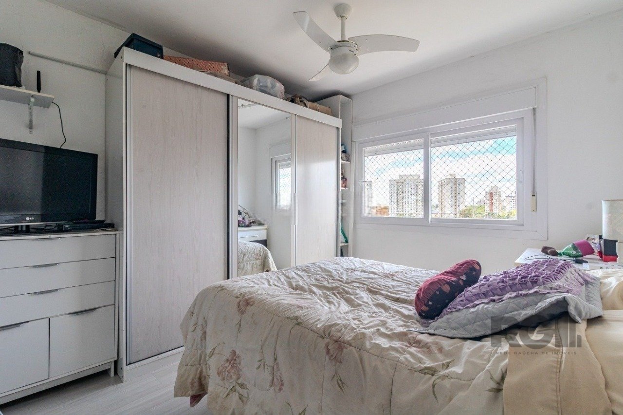 O apartamento possui 75 m² de área privativa, distribuídos em três dormitórios, sendo um deles suíte. O living integra estar e jantar, a cozinha é funcional e o imóvel conta ainda com banheiro social, área de serviço, churrasqueira, gás central, água quente e uma vaga de garagem escriturada.