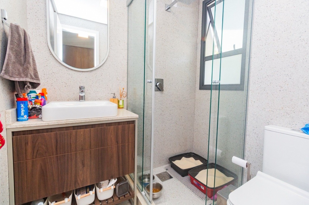 O condomínio oferece elevador, quiosque com churrasqueira e duas vagas de garagem, proporcionando praticidade e conforto para o dia a dia, além de uma infraestrutura adequada a um estilo de vida urbano e organizado.