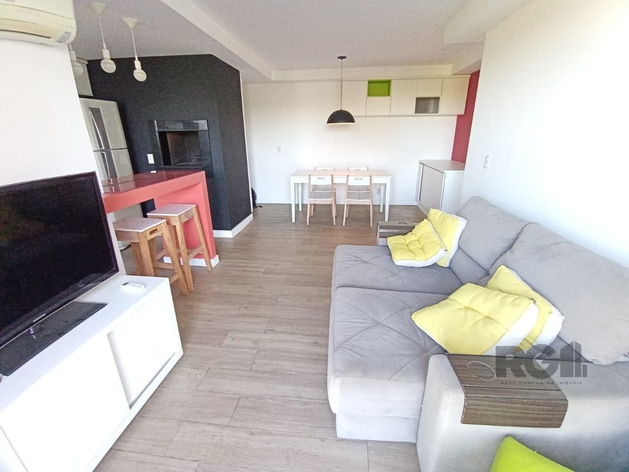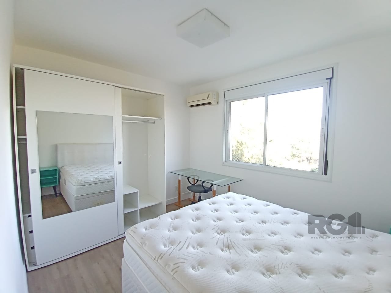 Apartamento com 84m² de área privada, composta por 3 dormitórios, 1 suíte, com Split em todas as dependências. Living amplo, 2 ambientes, com sofá retrátil, rack, TV, mesa com cadeiras e armários, cozinha completa, com churrasqueira, guarnecida com eletros modernos (refrigerador duplex, microondas, formo elétrico, coifa, cooktop, filtro de água, maquina lava e seca, etc.), dormitório de casal com suíte, cama box king, roupeiro, 1 dormitório utilizado para escritório com mesa, cadeira e estante e 1 dormitório com cama box casal e roupeiro espelhado. Banheiro social e suíte com chuveiro à gás, área de serviço conjugada, 01 vaga dupla de garagem, coberta. Condomínio com portaria 24hs, playground, piscina, salão de festas e fitness.