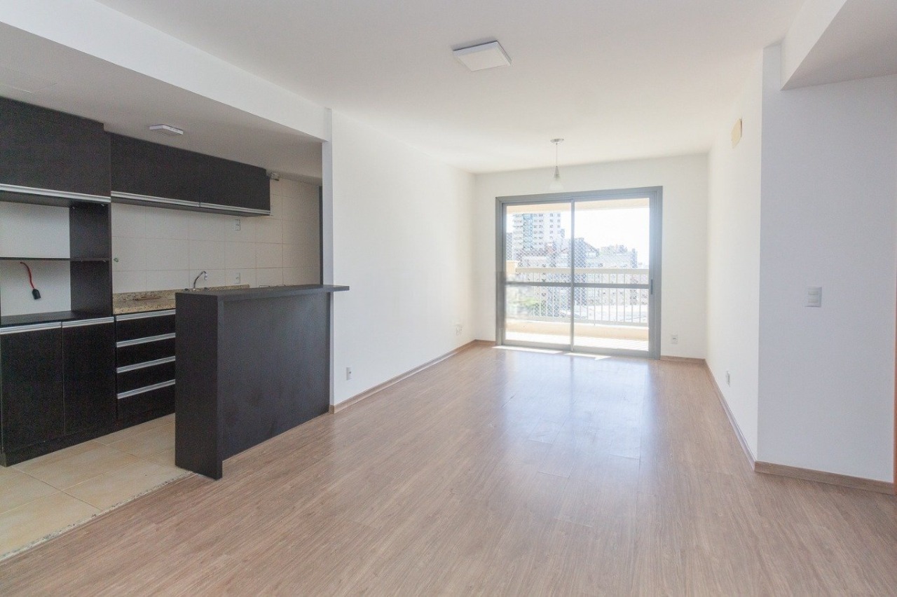 Apartamento com 87 m² privativos, bem distribuídos em living para dois ambientes, sacada com churrasqueira, cozinha funcional com armários e área de serviço. Possui dois dormitórios, sendo uma suíte, além de banheiro social, climatização e uma vaga de garagem.