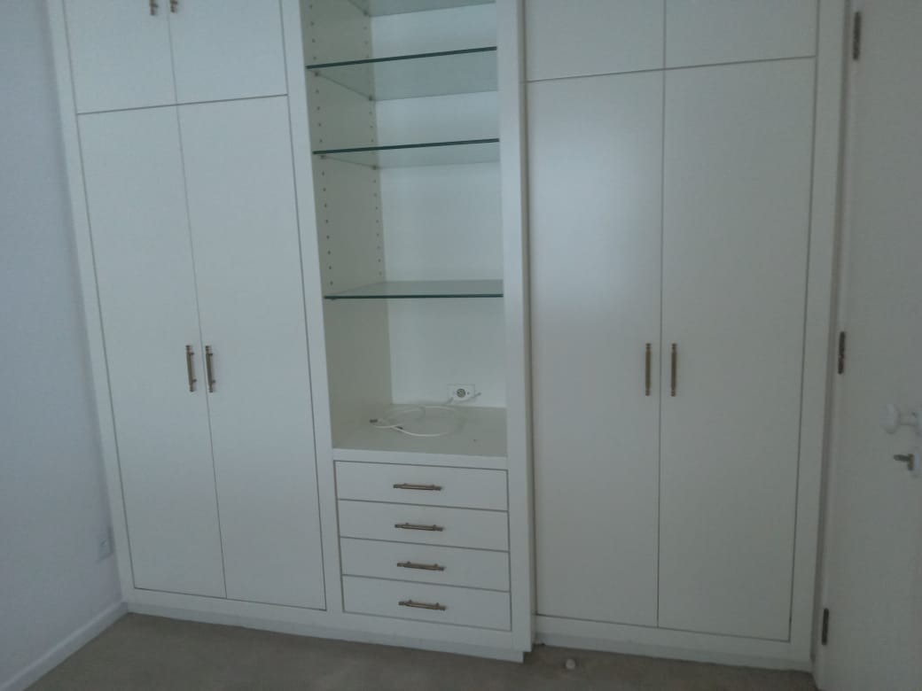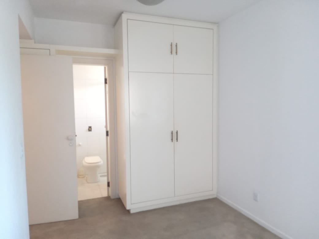 Apartamento semimobiliado com 89,11 m² de área privativa e 123 m² de área total, composto por dois dormitórios, incluindo uma suíte com closet, e três banheiros. A unidade mantém ar-condicionado e frigobar, além de contar com jardim. Inclui duas vagas de garagem escrituradas.