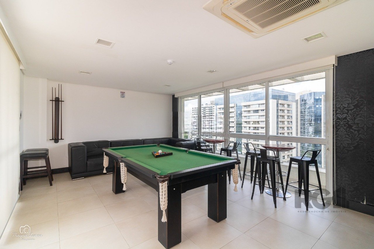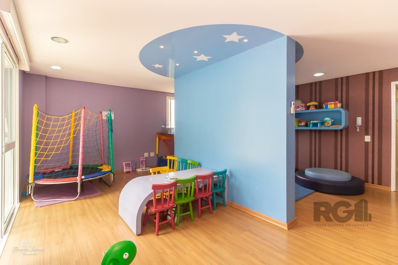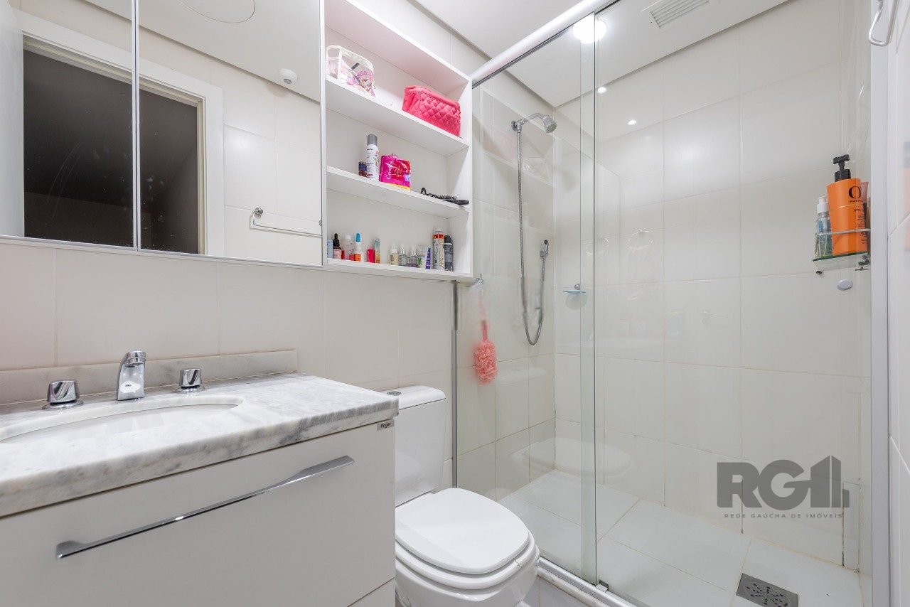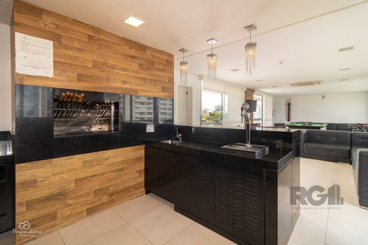 Com 81m² de área privativa, este apartamento possui uma planta flexível, atualmente com dois dormitórios, incluindo uma suíte e possibilidade de reversão para três quartos. O living foi estendido, conta com lareira ecológica e recebe boa iluminação natural devido à posição solar favorável. A cozinha americana integra-se à área social, equipada com churrasqueira, além de área de serviço separada e banheiro social. O imóvel dispõe de duas vagas cobertas em garagem com vaga dupla.