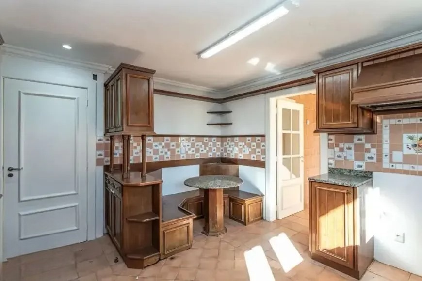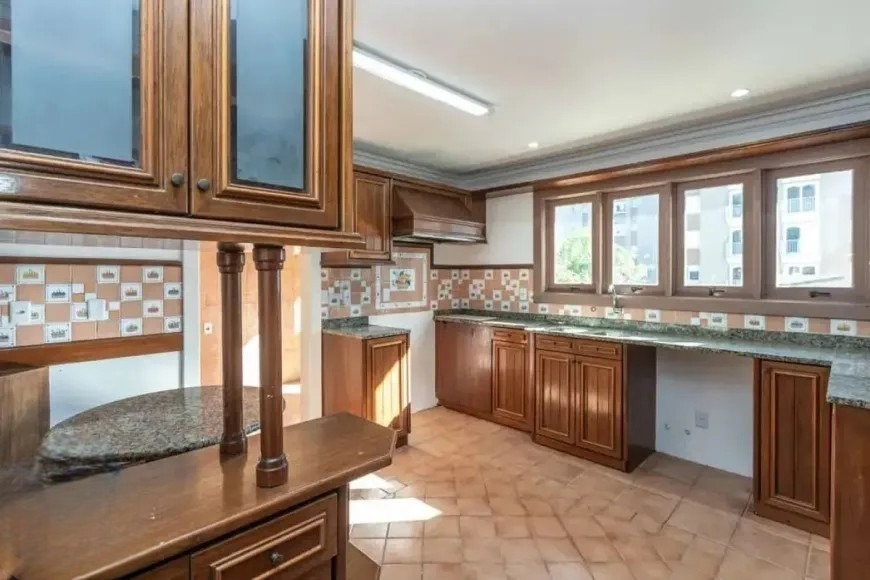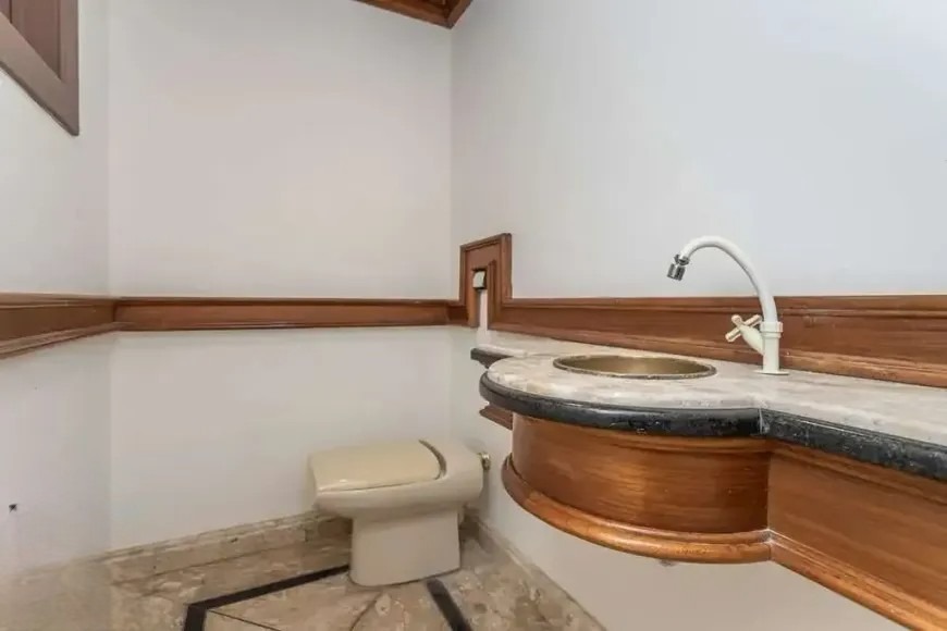 Casa residencial com aproximadamente 400 m² de área privativa, com planta ampla e bem distribuída. O imóvel possui 4 dormitórios, sendo 3 suítes, living para três ambientes, sala de TV e lavabo, oferecendo espaços adequados para convivência e recepção. A área de serviço é completa, com cozinha com armários, despensa, lavanderia e dependência de empregada, totalizando 7 banheiros no imóvel.