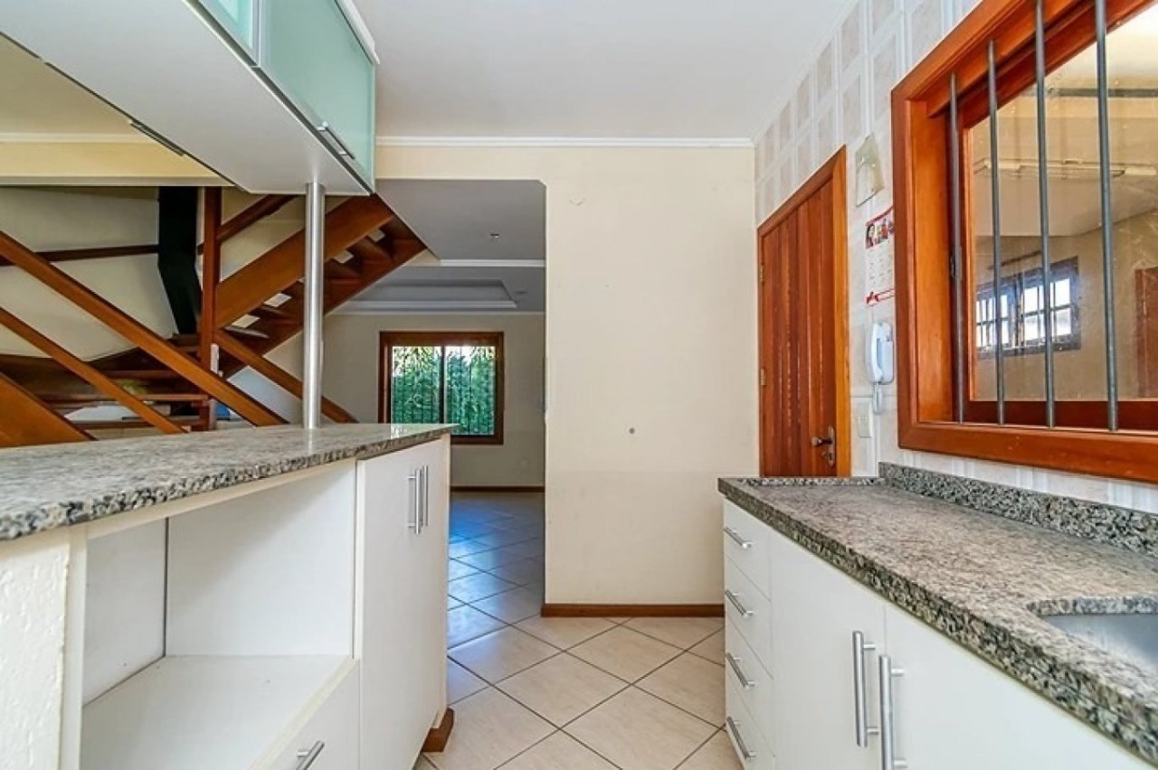 Casa em condomínio com 165m² privativos, composta por 3 dormitórios, sendo 1 suíte com split, 2 banheiros e lavabo. Living para dois ambientes com lareira, cozinha com armários, sótão e área de serviço. Conta ainda com churrasqueira e 3 vagas de garagem.