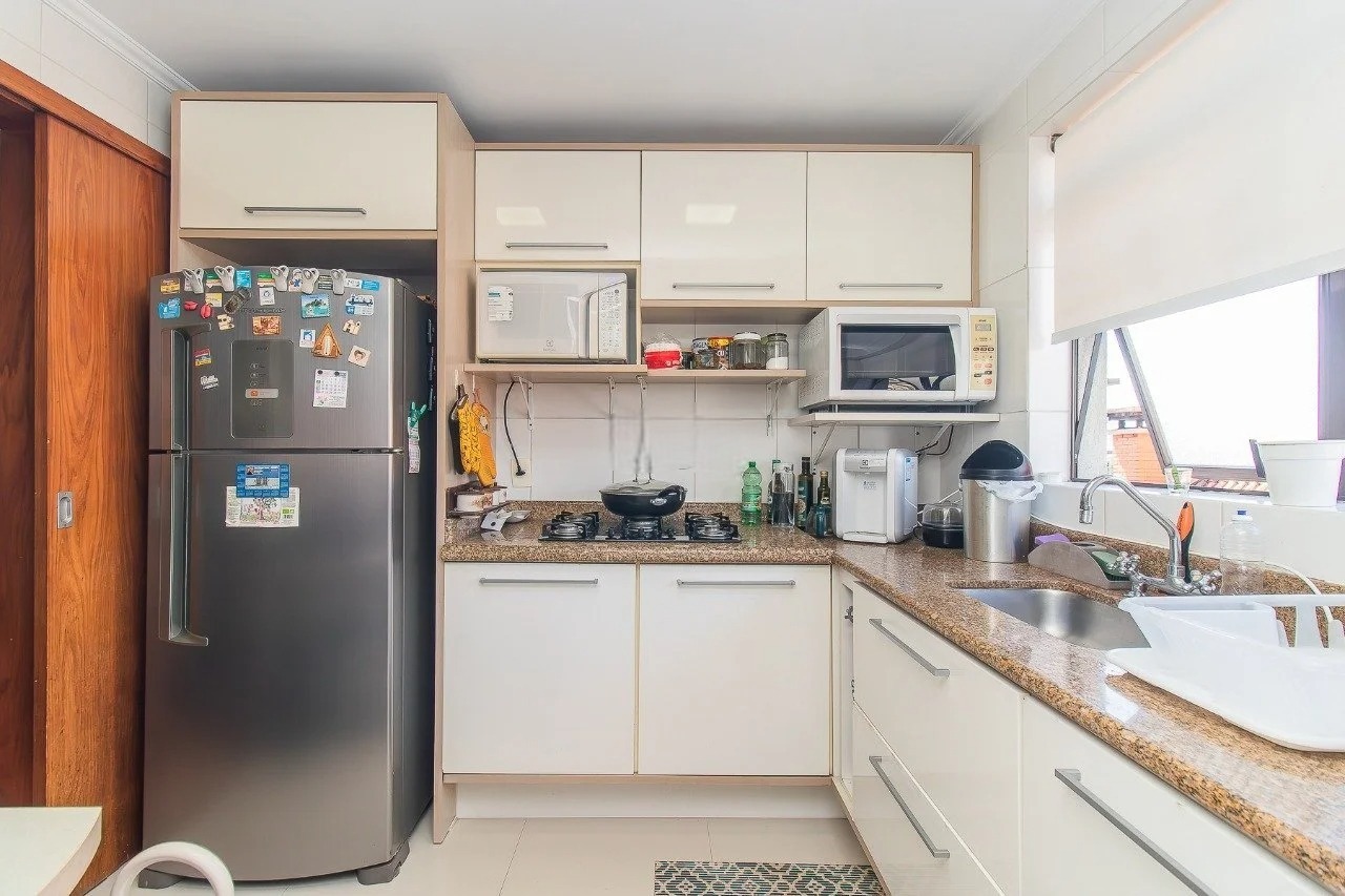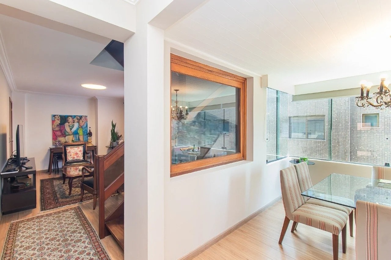 Cobertura mobiliada com 216 m² de área privativa, planta bem distribuída e ambientes amplos e iluminados. O imóvel dispõe de três dormitórios, sendo duas suítes, living integrado, cozinha completa e terraço com espaço gourmet e churrasqueira, oferecendo conforto e funcionalidade.