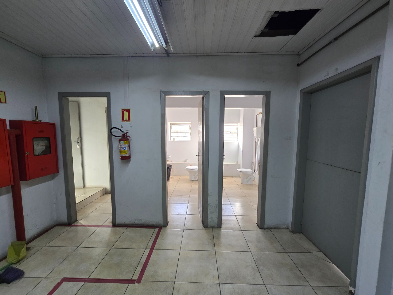 Estrutura preparada para alto fluxo operacional, com três portões para acesso de caminhões, sendo um deles com doca em desnível, facilitando carga e descarga.