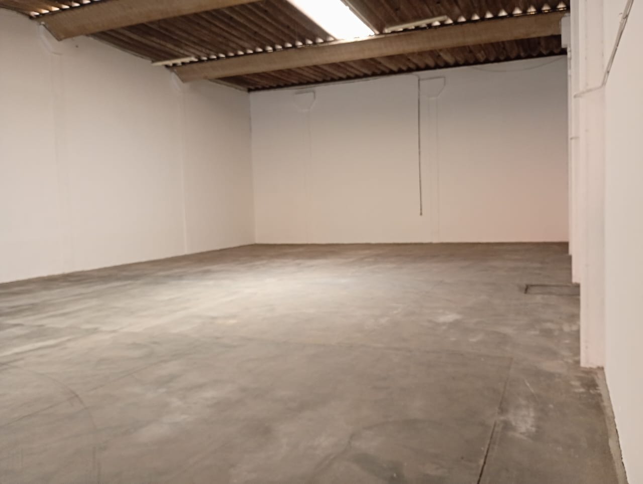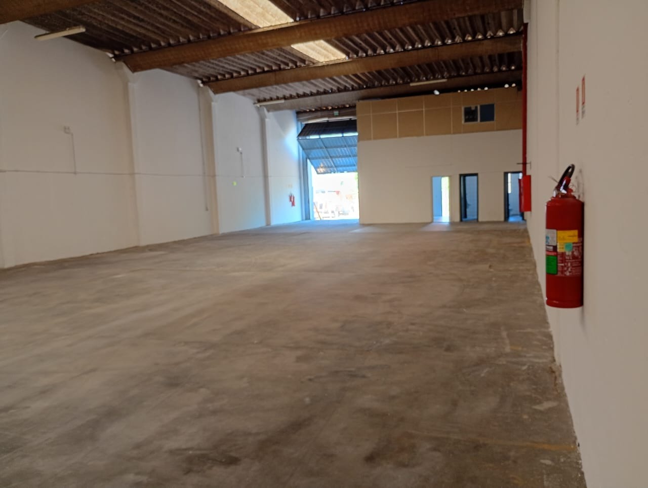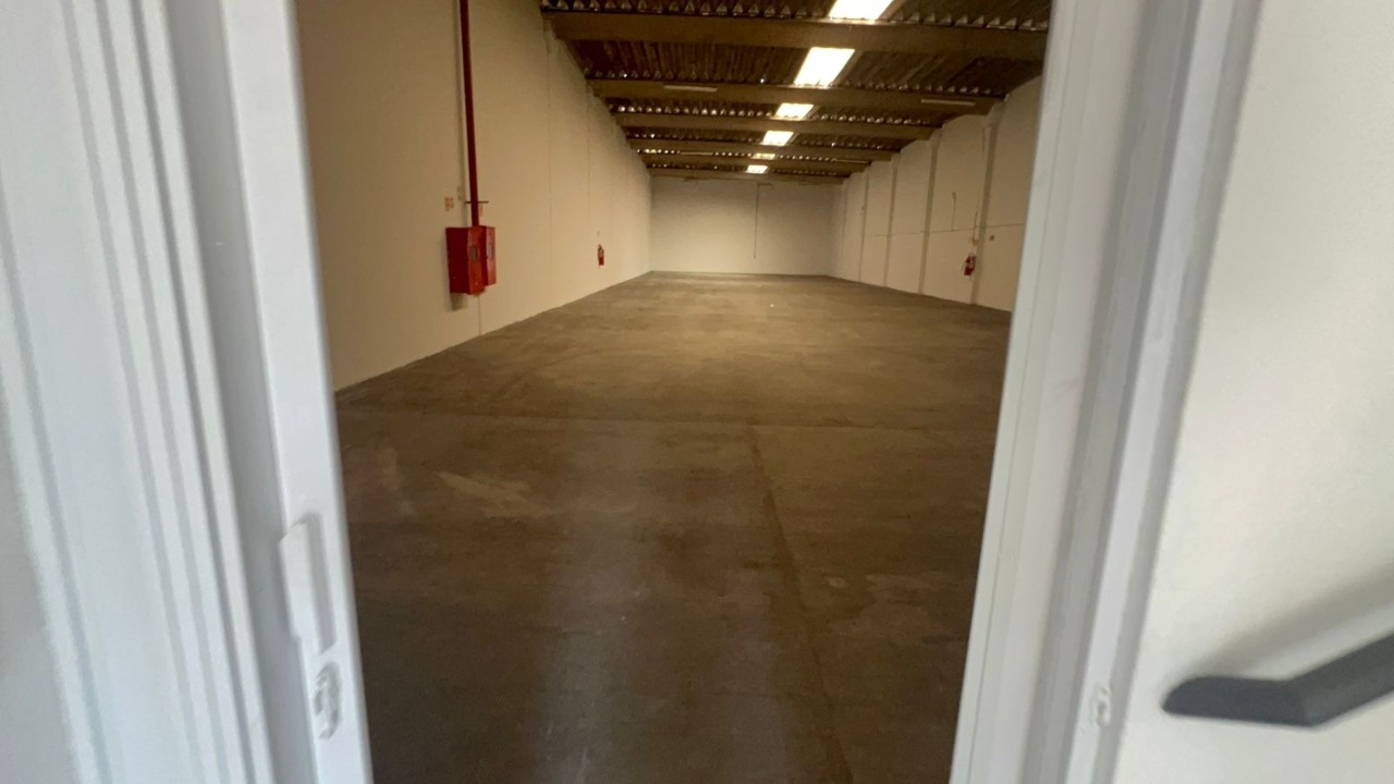 Galpão comercial com aproximadamente 670 m² de área privativa, distribuídos entre piso térreo e mezanino. O espaço conta com recepção, dois vestiários, banheiros e portão de acesso para caminhões com 4,5 m de largura por 7 m de altura. Piso em concreto, adequado para operações logísticas, armazenagem ou atividades industriais leves.
