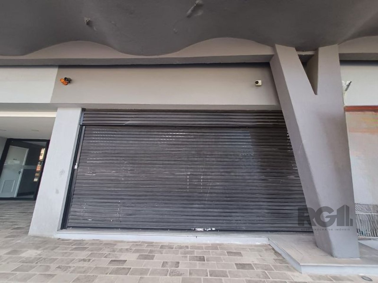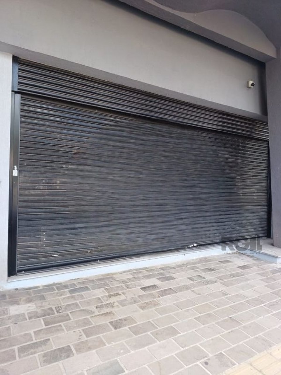 A loja inclui vitrine e porta em vidro, cortinas metálicas automatizadas com controle remoto, além de revestimento com piso em porcelanato e cerâmico em diferentes áreas do ambiente. A configuração é adequada para instalação de atividades comerciais com atendimento ao público.