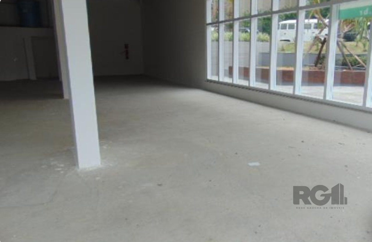 A loja conta com fachada envidraçada, pé-direito elevado com possibilidade de construção de mezanino, dois banheiros e duas vagas de garagem cobertas. O piso está bruto, e há possibilidade de negociação para instalação de piso e forro.