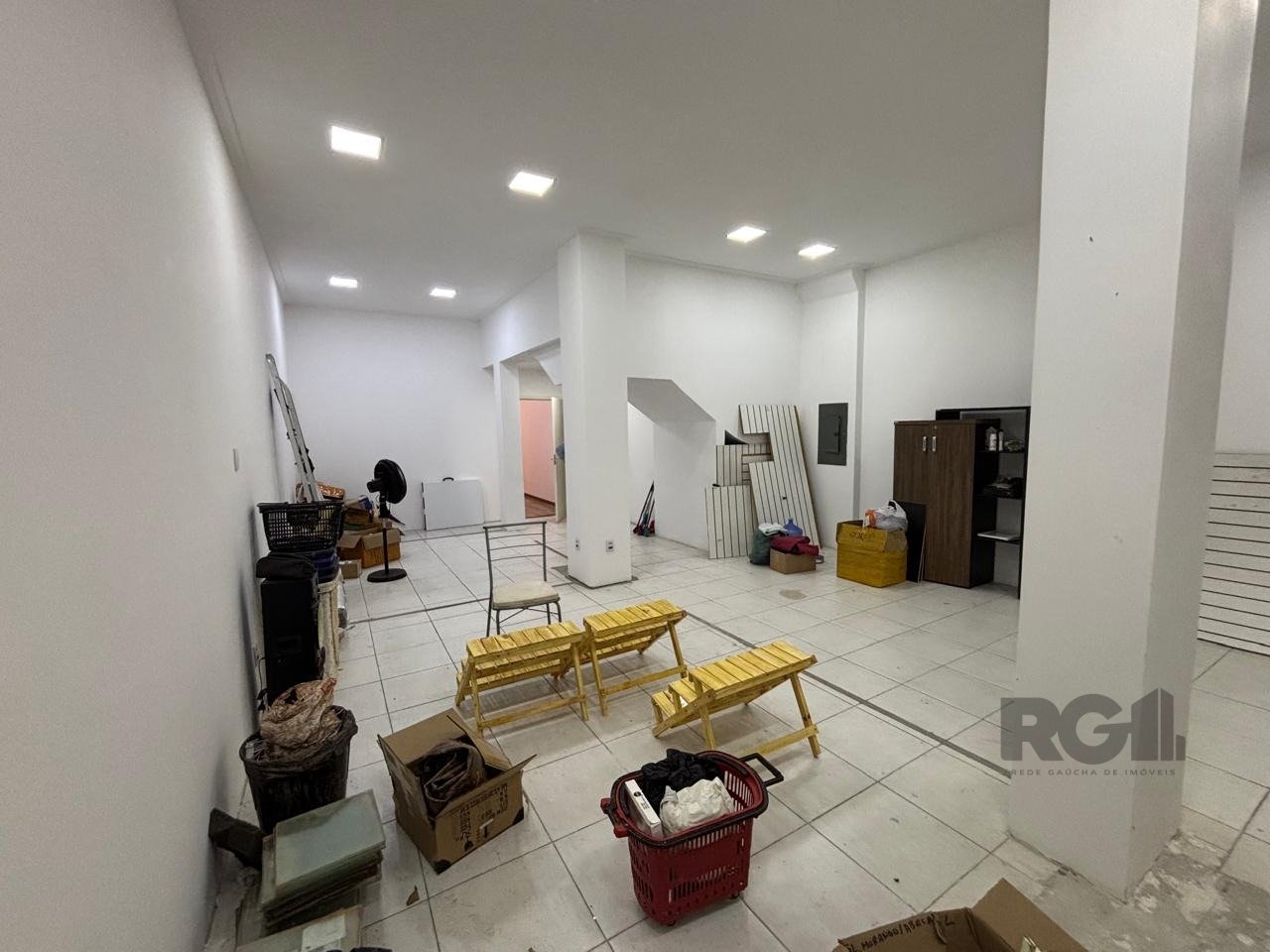 O subsolo pode ser utilizado como depósito, ampliando a capacidade de armazenamento. A configuração do espaço atende a diversos tipos de atividade comercial.