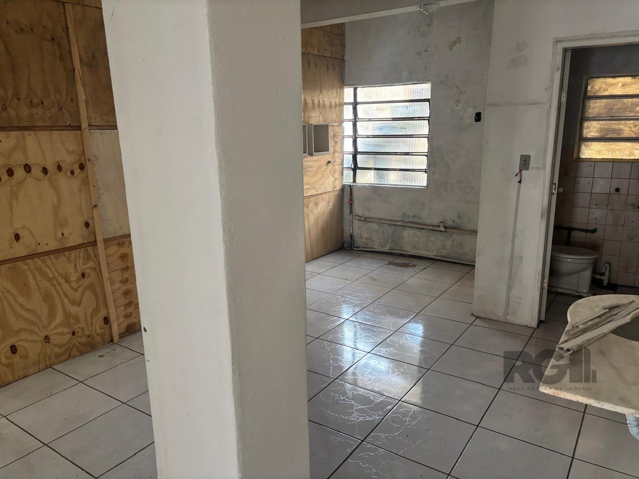 Conta com um ambiente principal dividido por estruturas internas e um lavabo. A configuração do espaço permite adaptação conforme a finalidade do uso.