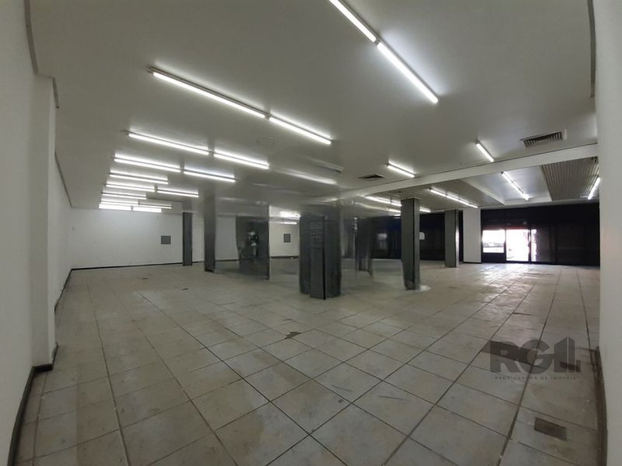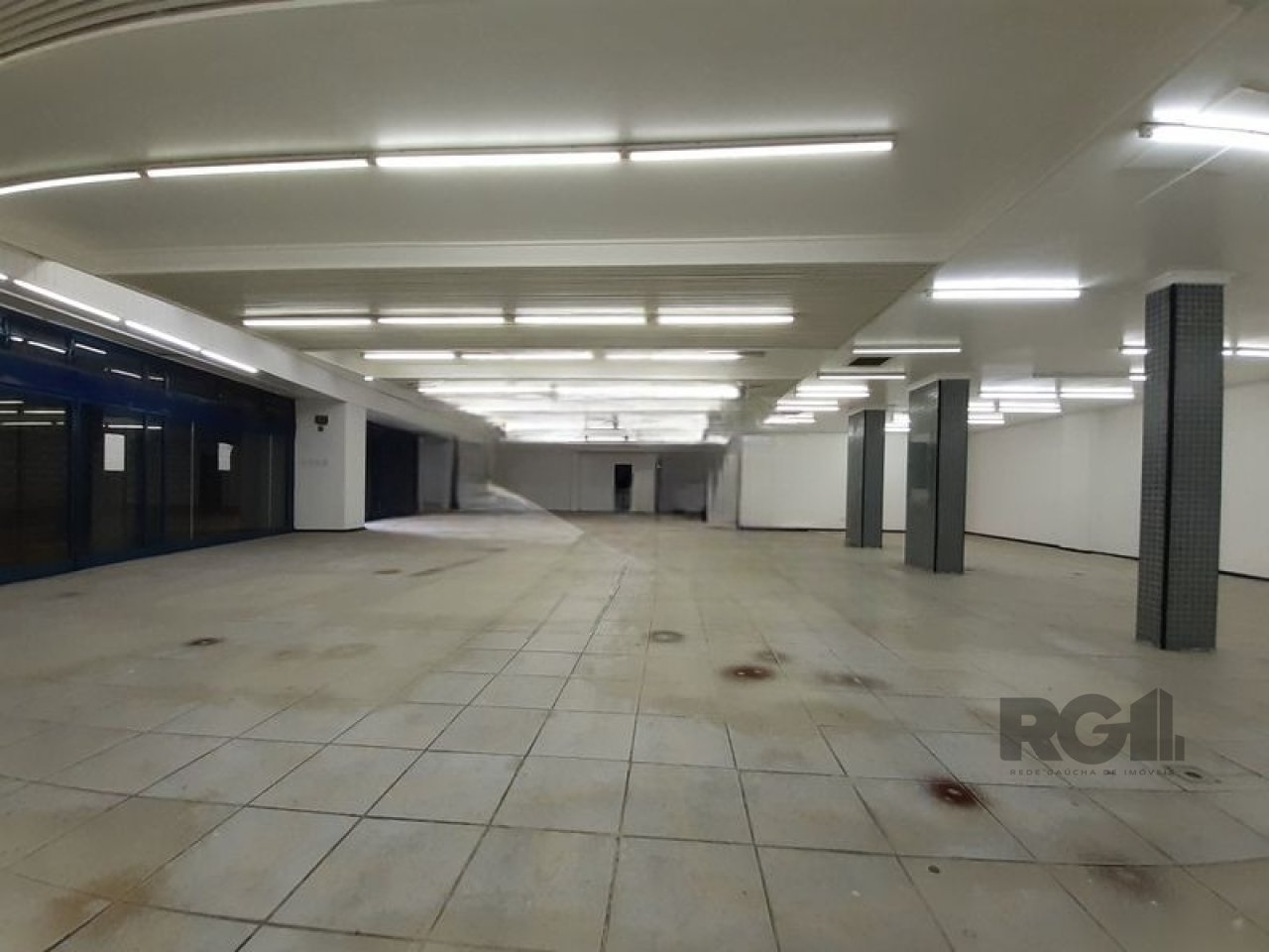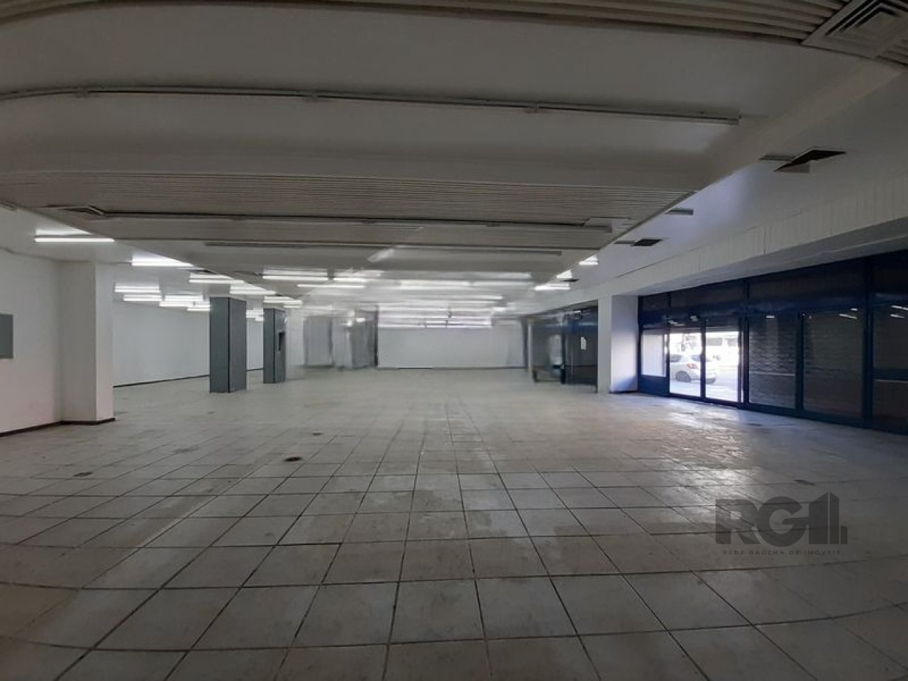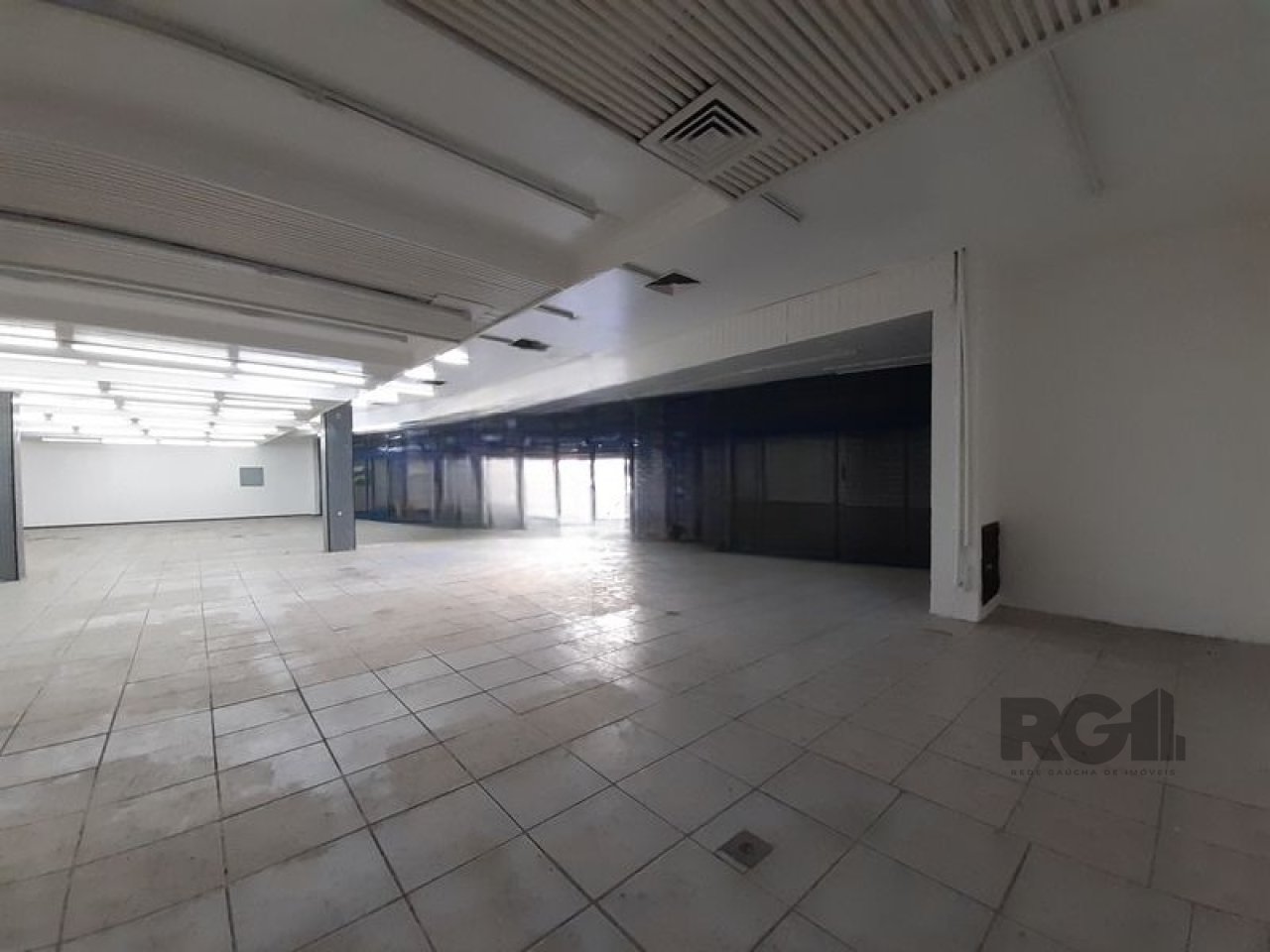 imóvel possui espaço amplo, pé-direito elevado e possibilidade de instalação de mezanino. A loja conta com fachada envidraçada, equipada com cortinas de ferro, dois banheiros e uma copa. A estrutura permite diferentes configurações, adequada para diversos tipos de atividades comerciais.
