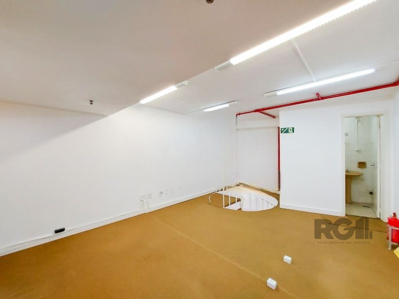 A loja possui aproximadamente 53 metros quadrados de área útil, distribuídos entre pavimento térreo e sobreloja. O piso é revestido com carpete e parquet, e o espaço conta com um banheiro.