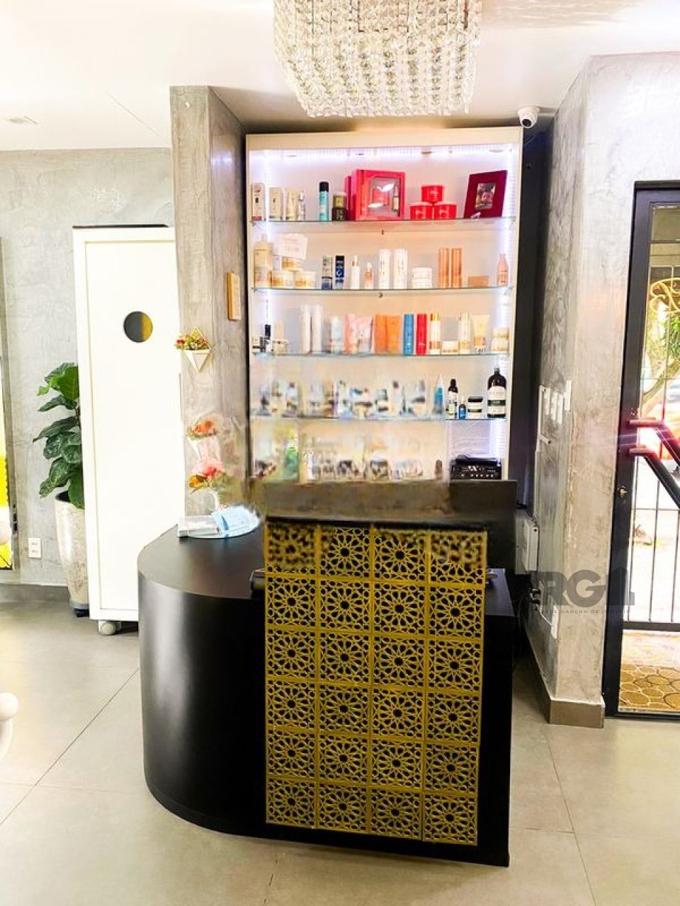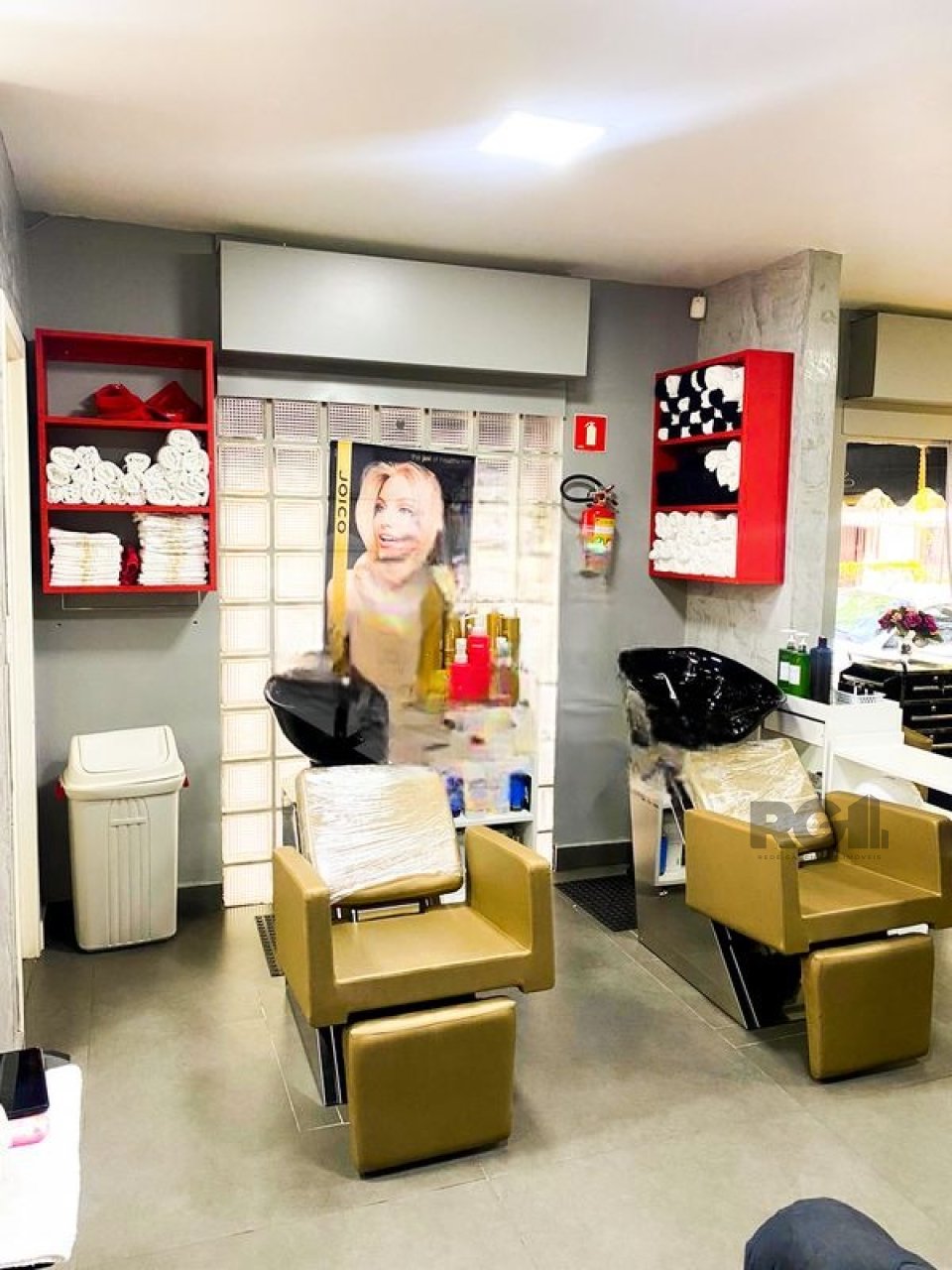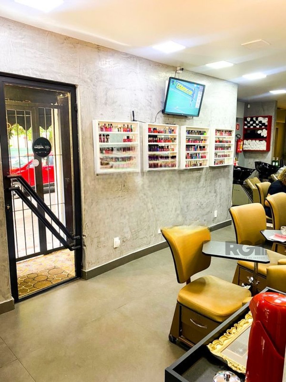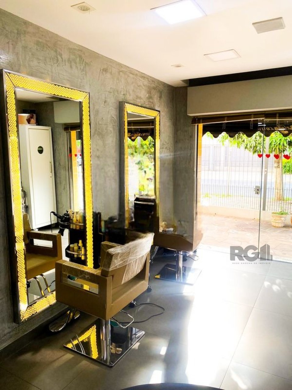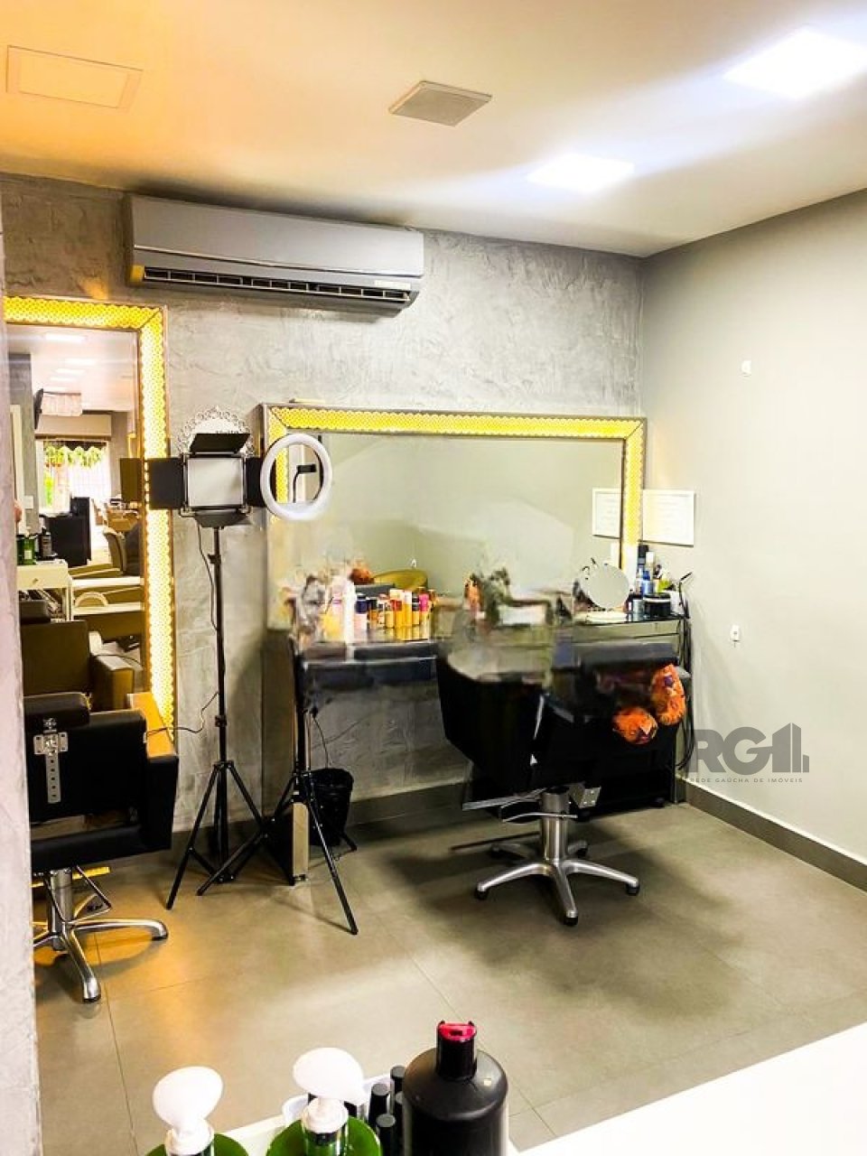 O espaço possui um salão principal e está equipado com mobiliário voltado para atividades de estética, incluindo cadeiras, espelhos, macas e sistema de climatização.