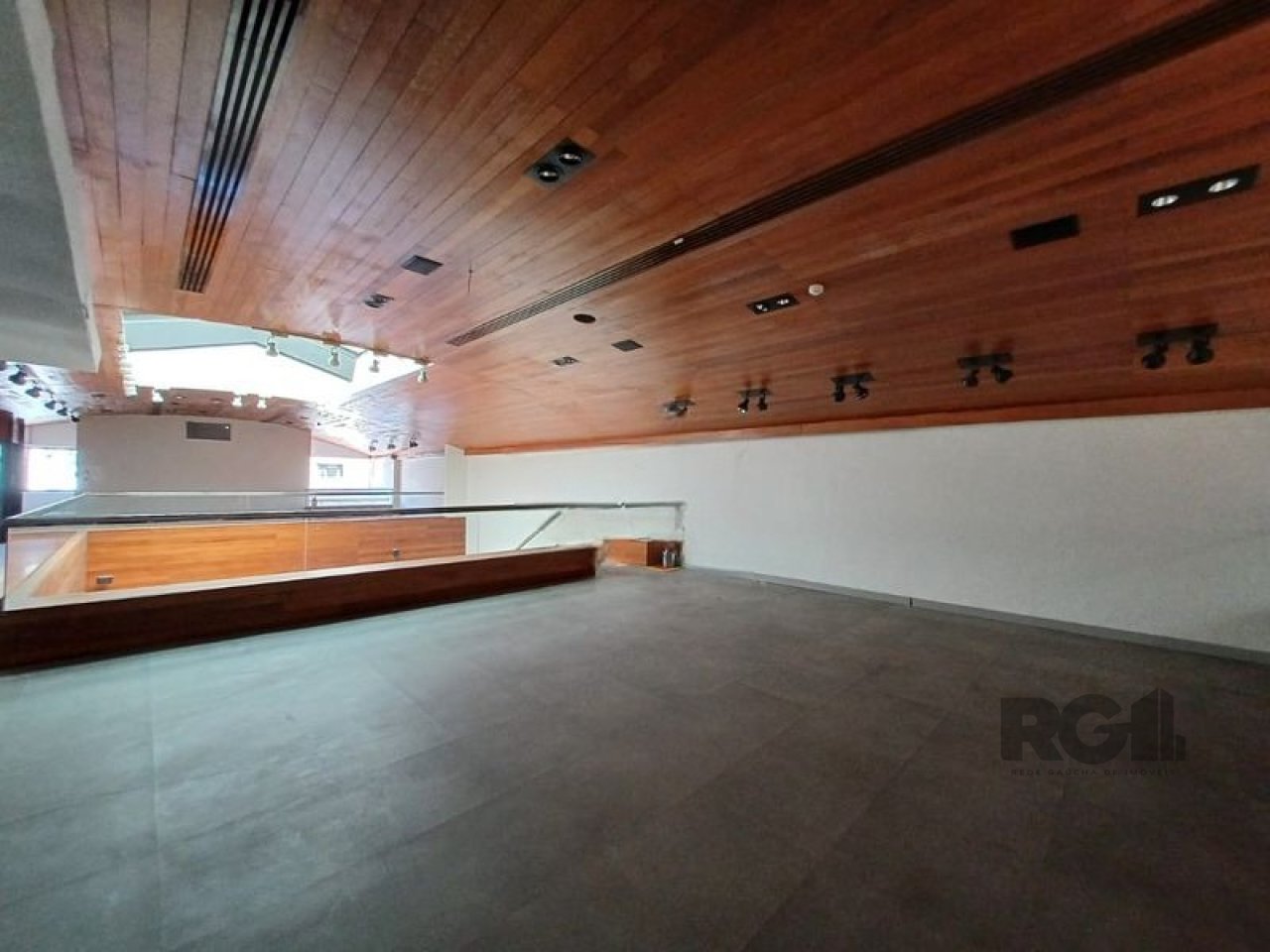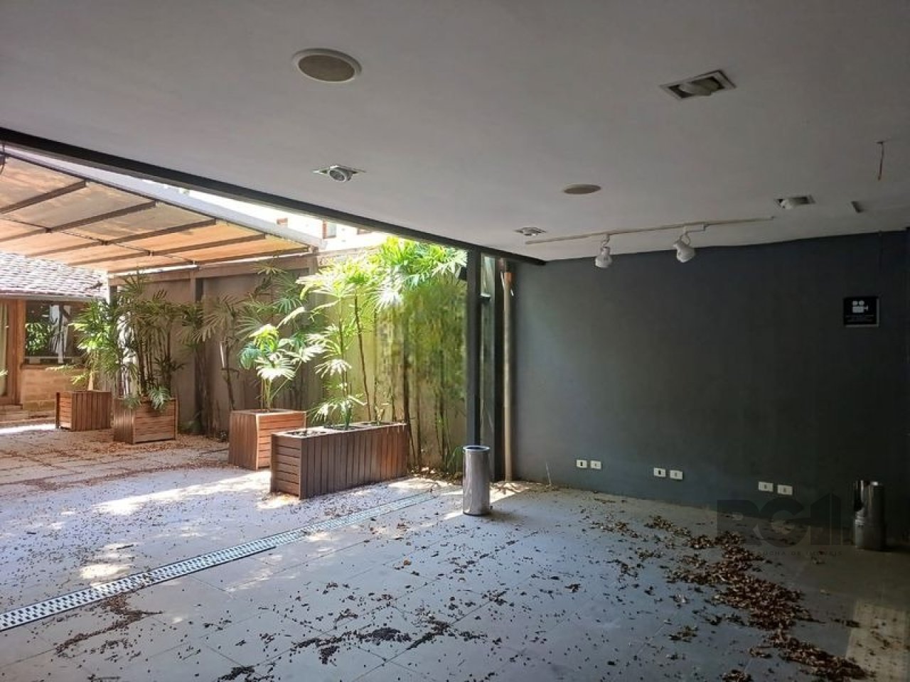 A loja conta com salão principal, salas para reuniões e estrutura para provadores. Possui vitrine com visibilidade frontal. O espaço inclui banheiros distribuídos em diferentes áreas, copa, elevadores e áreas com acessibilidade. Nos fundos, há um pátio coberto com estrutura retrátil automatizada.