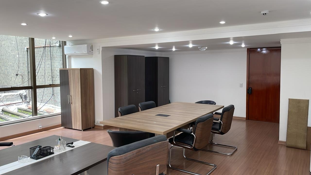 Sala comercial com área privativa aproximada de 58,75m² e 1 vaga de garagem coberta. Ambiente funcional, entregue mobiliado, com estações de trabalho, armários planejados, balcões e espaço gourmet integrado.