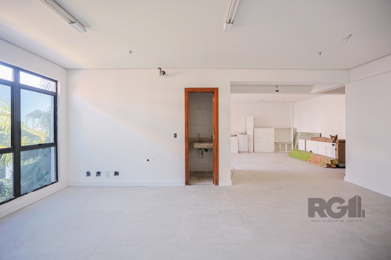 Sala comercial com 95 m² privativos, iluminada e arejada no bairro Petrópolis em Porto Alegre/RS.