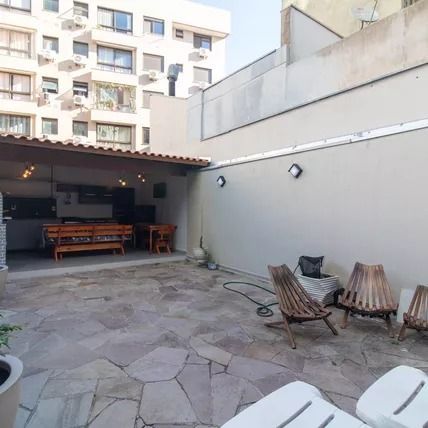 Apartamento GARDEN com 2 dormitórios na Rua Duque de Caxias em Porto Alegre. Escritório, dois banheiros, 1 suíte com banheira, sala de estar, sala de TV,cozinha, de frente com sacada. Pátio com área gourmet, banheiro e lavanderia.