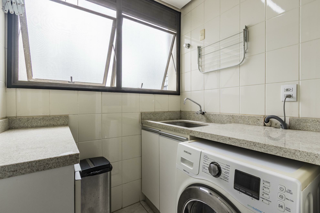 O living é amplo, com lareira e lavabo, perfeito para reunir a família em todas as estações. O apartamento é semi-mobiliado e permanecem os móveis planejados e os eletros fixos, incluindo ar-condicionado, ventilador, forno, cooktop e coifa, oferecendo praticidade desde o primeiro dia.