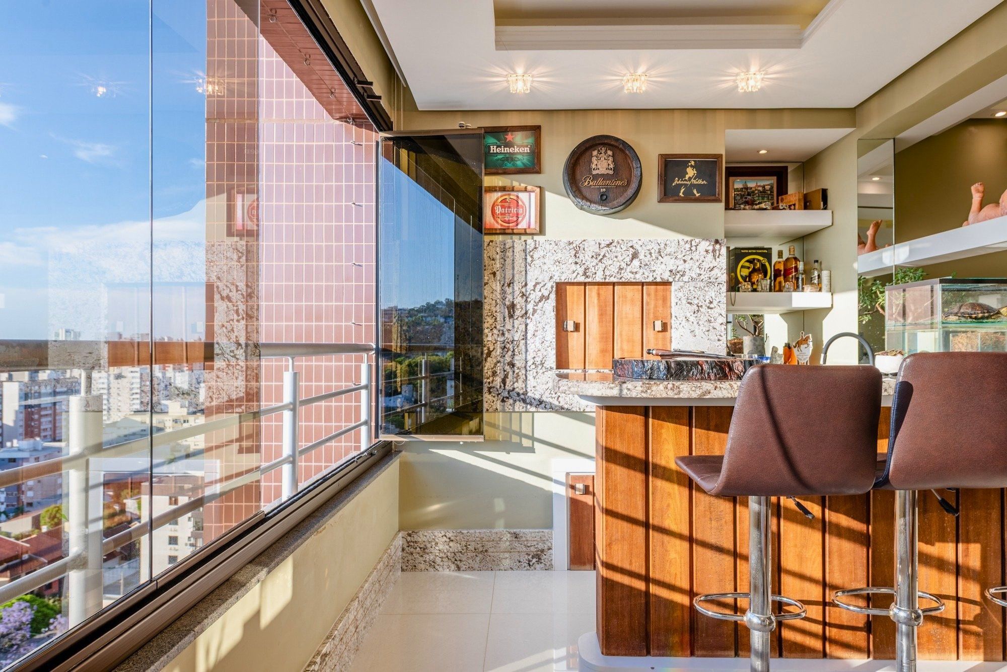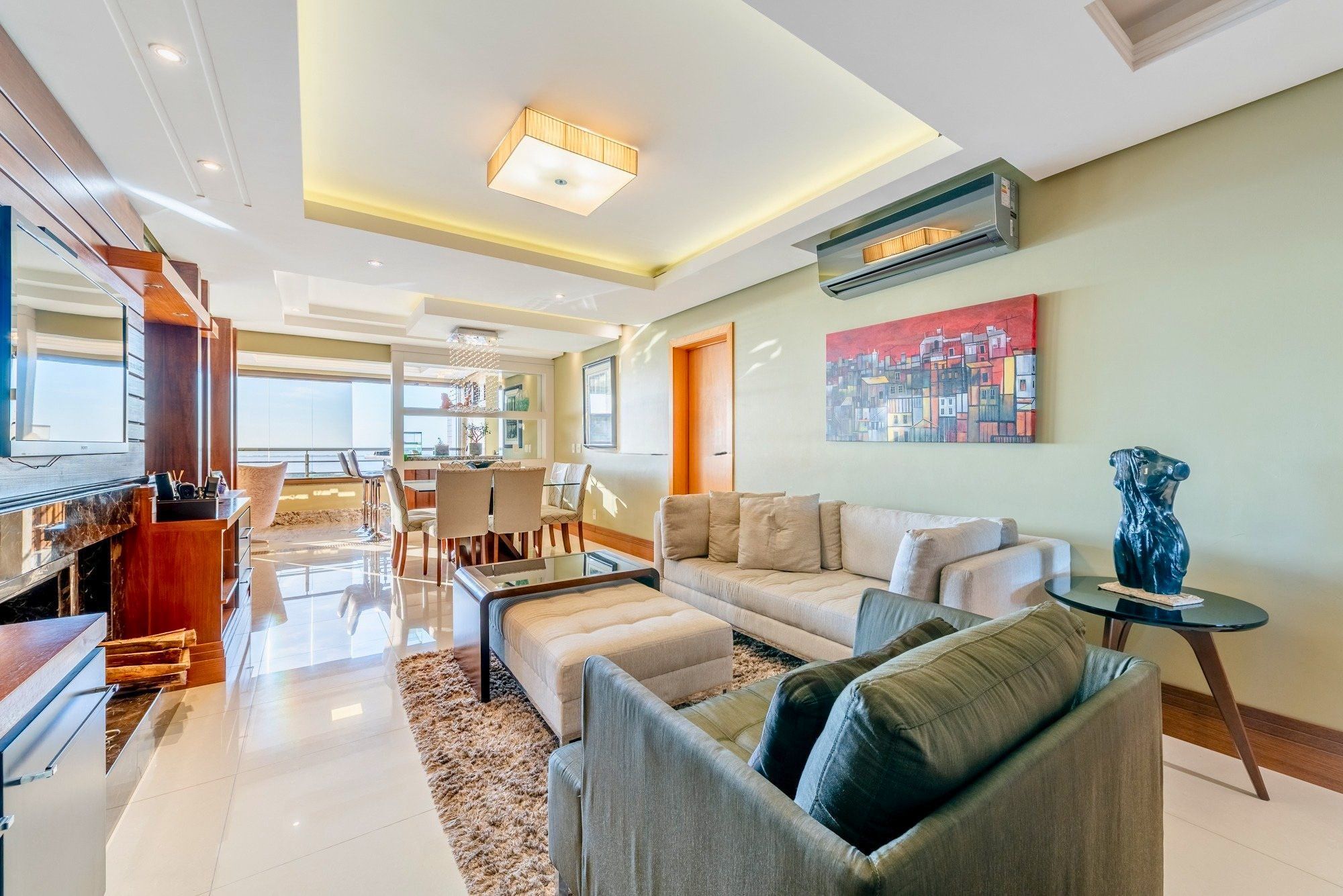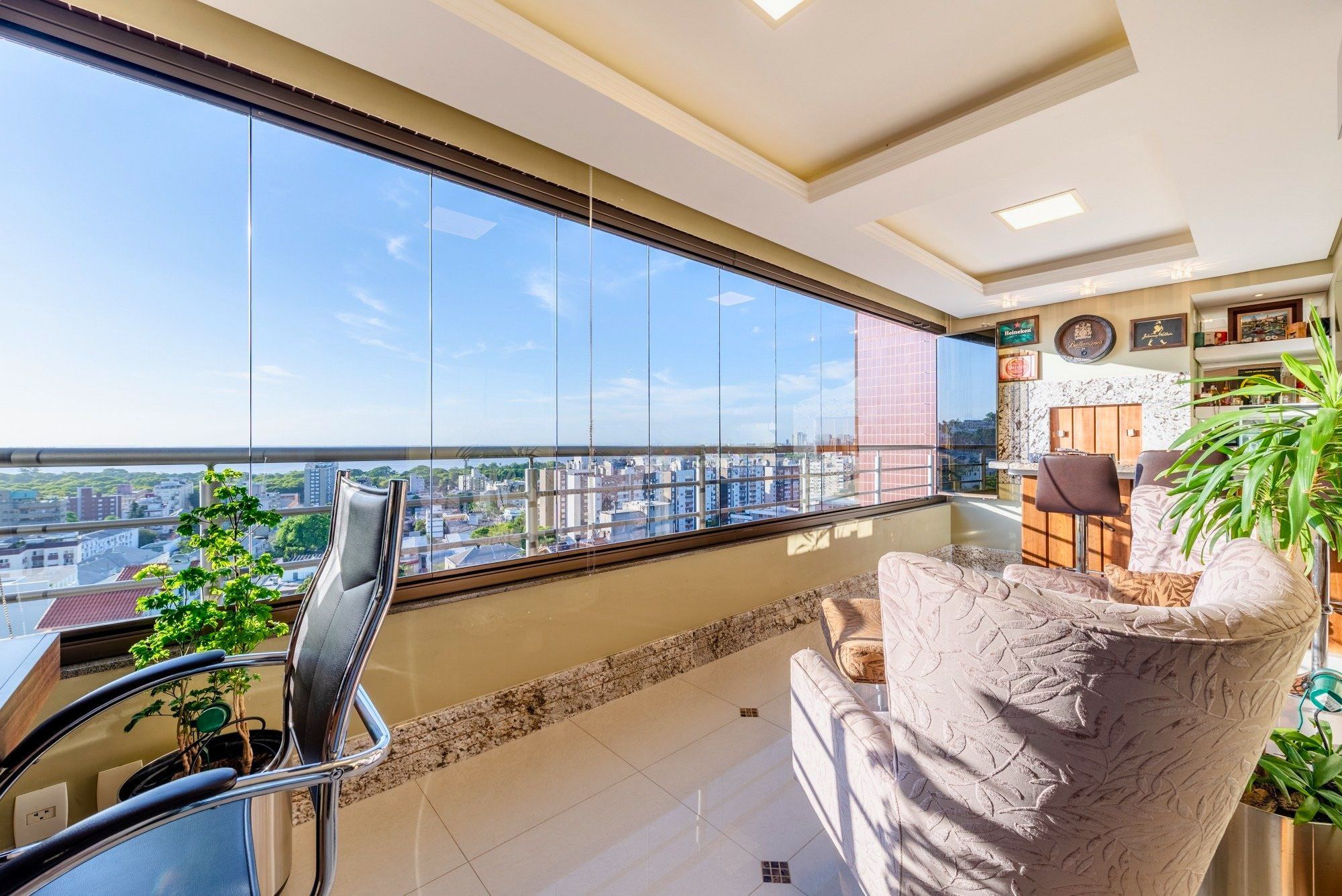 Encante-se com este apartamento sofisticado, que combina conforto, elegância e uma das vistas mais privilegiadas de Porto Alegre. Com um amplo living para três ambientes, o espaço integra perfeitamente estar, jantar e área gourmet com churrasqueira, criando um ambiente ideal tanto para receber quanto para relaxar. A lareira traz aconchego, enquanto o rebaixo em gesso com iluminação planejada e a marcenaria sob medida agregam charme e funcionalidade.
