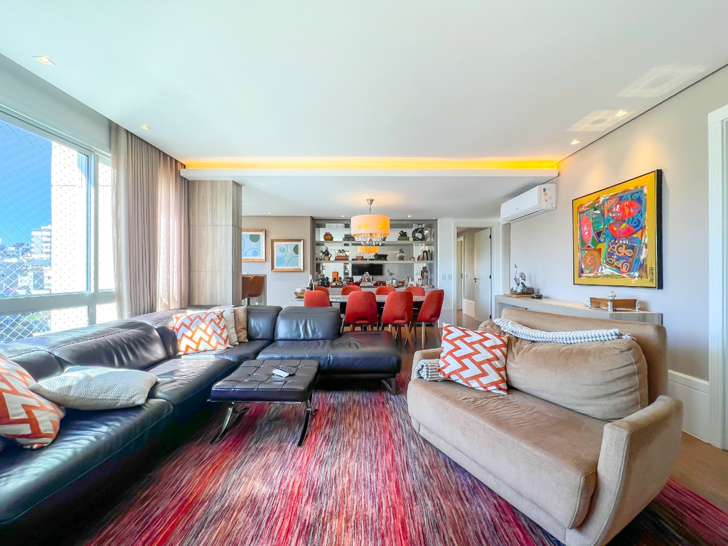Oportunidade única, andar alto em prédio de alto padrão com infra estrutura e ótima localização. Apartamento semi mobiliado, com 137m² privativos, possui amplo living com lareira e churrasqueira, lavabo, gabinete, janelas grandes e vista livre para a cidade. São 3 suítes amplas, cozinha e área de serviço + wc auxiliar. Orientação solar leste, sol da manhã. 2 vagas de garagem (1 vaga dupla). Condomínio com infra estrutura completa. Contando com portaria 24 horas, academia, piscina, salão de festas, espaço gourmet com churrasqueira, playground, quadra de futebol, brinquedoteca, espaço teen e espaço pet. Este condomínio é preparado para atender às necessidades dos moradores que buscam lazer e conforto em um só lugar. Preço e disponibilidade do imóvel sujeitos a alteração sem aviso prévio.