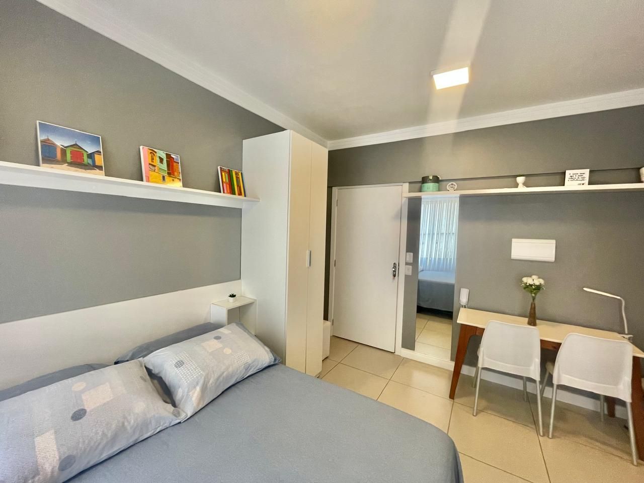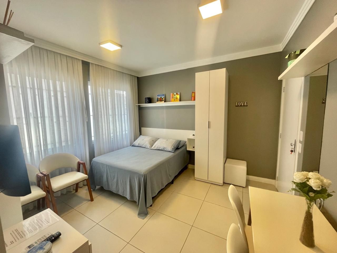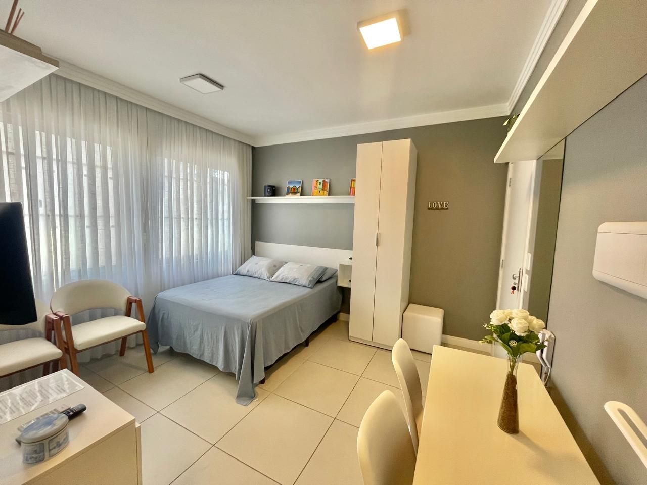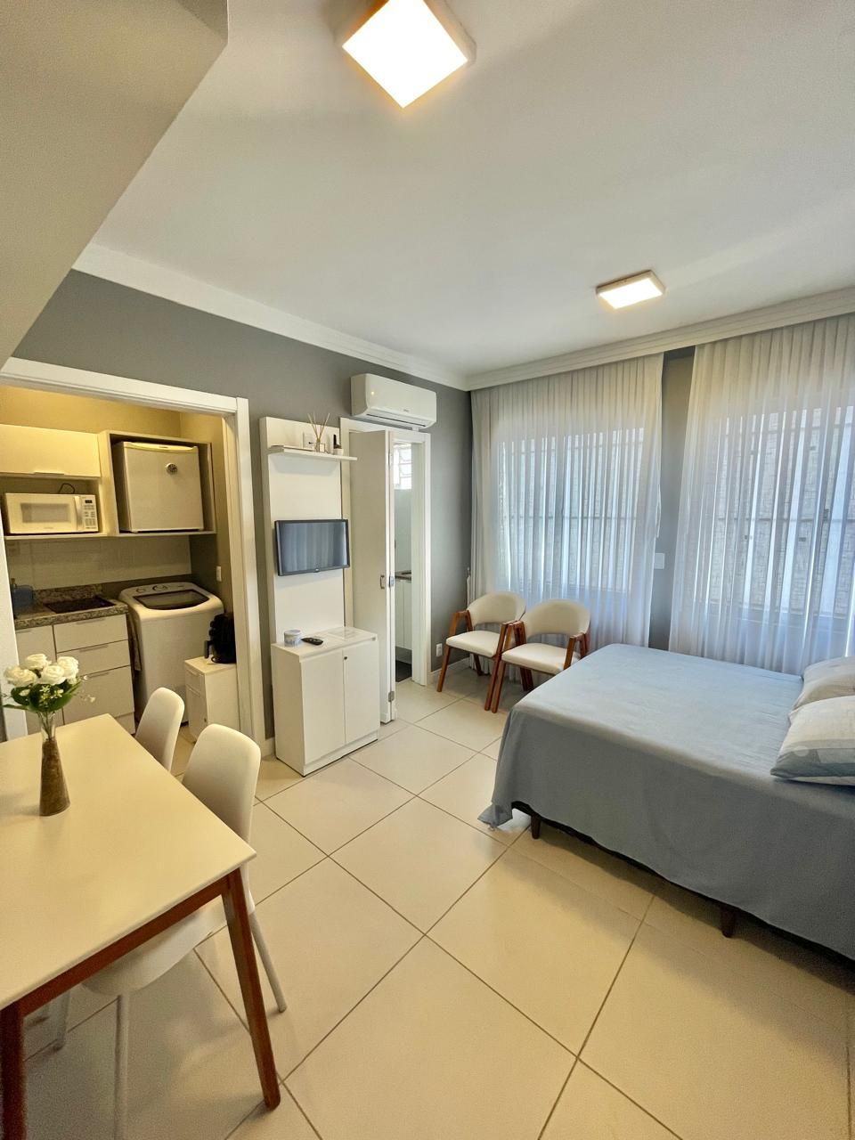 O espaço é entregue com todos móveis fixos, projetados por arquiteta, geladeira, cooktop elétrico, máquina de lavar roupa, split, luminárias, tv e cortinas de linho com blackout, pronto para morar ou investir para AIRBNB.