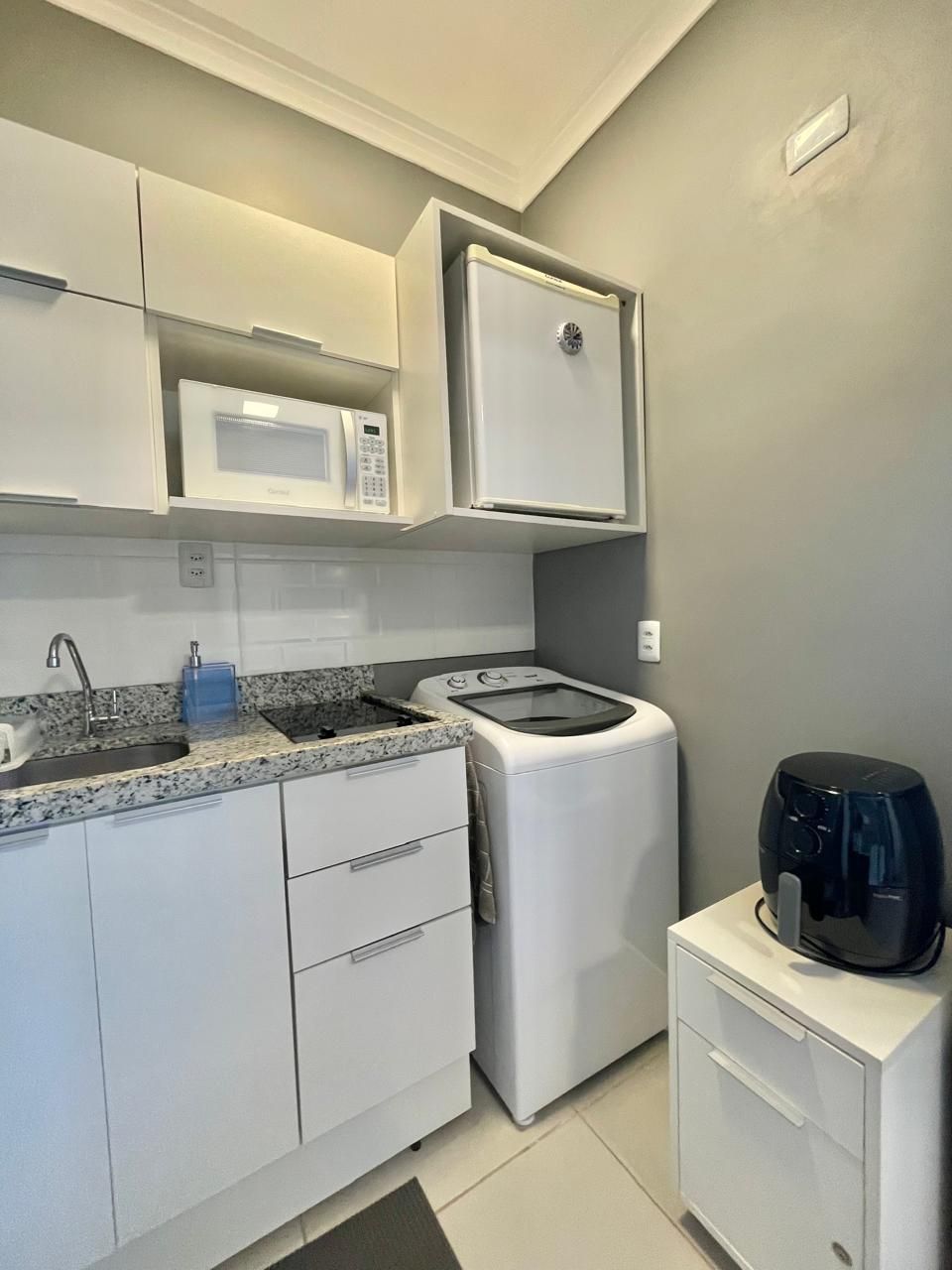 O espaço é entregue com todos móveis fixos, projetados por arquiteta, geladeira, cooktop elétrico, máquina de lavar roupa, pronto para morar ou investir para AIRBNB.