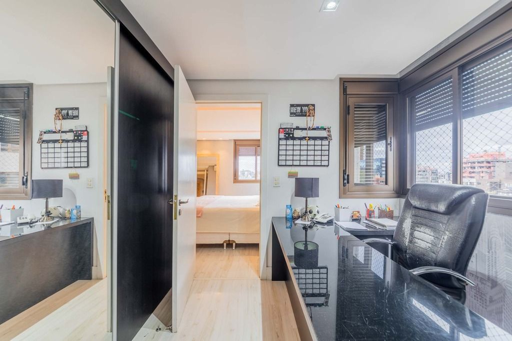 Apresentamos um sofisticado apartamento no bairro Petrópolis, com 266 m² de área privativa, oferecendo três suítes, incluindo uma suíte master com closet, banho ele/ela e lareira. Existe ainda a opção de uma quarta suíte ou escritório. O imóvel inclui três vagas de garagem, garantindo conveniência e exclusividade. A área social deste apartamento é verdadeiramente excepcional, com um elevador privativo e panorâmico que dá acesso ao exclusivo hall de entrada. O living, composto por três ambientes, é integrado ao espaço gourmet com churrasqueira, lareira, lavabo e sacada, proporcionando um ambiente ideal para entretenimento e conforto. A ampla copa-cozinha, área de serviço e dependência de empregada completa possuem acesso ao elevador de serviço, oferecendo praticidade e funcionalidade. A área íntima conta com três suítes. A suíte master é um verdadeiro refúgio de luxo, com banho e closet ele/ela, banheira e lareira, além de espaço suficiente para um gabinete privativo. As outras duas suítes oferecem conforto adicional, sendo uma delas com sacada. O empreendimento possui uma fachada contemporânea, com detalhes em ACM (alumínio composto de alta durabilidade), e um elevador panorâmico codificado. A infraestrutura de lazer é completa, incluindo salão de festas com churrasqueira, integrado a um lindo longe externo com lareira e churrasqueira, fitness center, brinquedoteca, playground, piscina adulto e infantil (sendo a infantil aquecida) e quadra poliesportiva. Localizado nos altos do bairro Petrópolis, em uma das ruas mais arborizadas, este apartamento oferece um ambiente de luxo, conforto e tranquilidade. Agende sua visita e descubra a excelência deste imóvel exclusivo. Preço e disponibilidade do imóvel sujeitos a alteração sem aviso prévio.