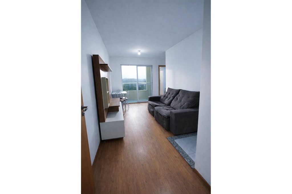 O living se divide em dois ambientes aconchegantes. A cozinha mobiliada e equipada com forno microondas e fogão. Além disso, a área de serviço muito bem planejada com máquina de lavar roupas. O apartamento possui dois dormitórios, banheiro social. Situado no 4º andar, ensolarado com sol poente.