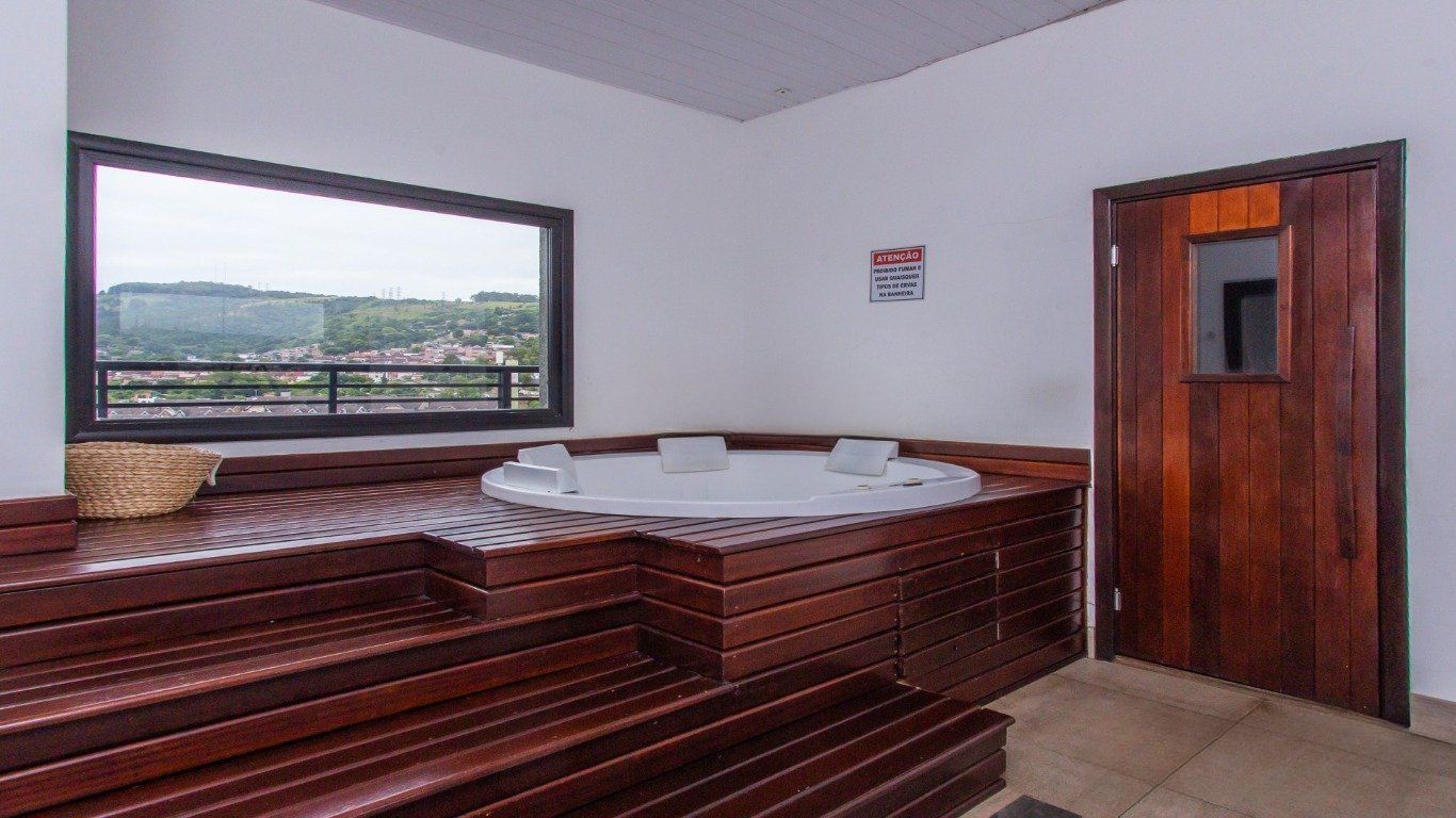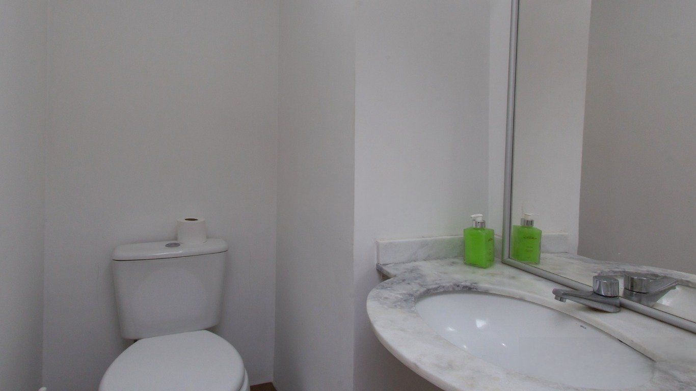 O dormitório é do tipo suíte, contando com ar-condicionado split e roupeiro planejado. Banheiro privativo com armários sob medida e sistema de aquecimento de água a gás.