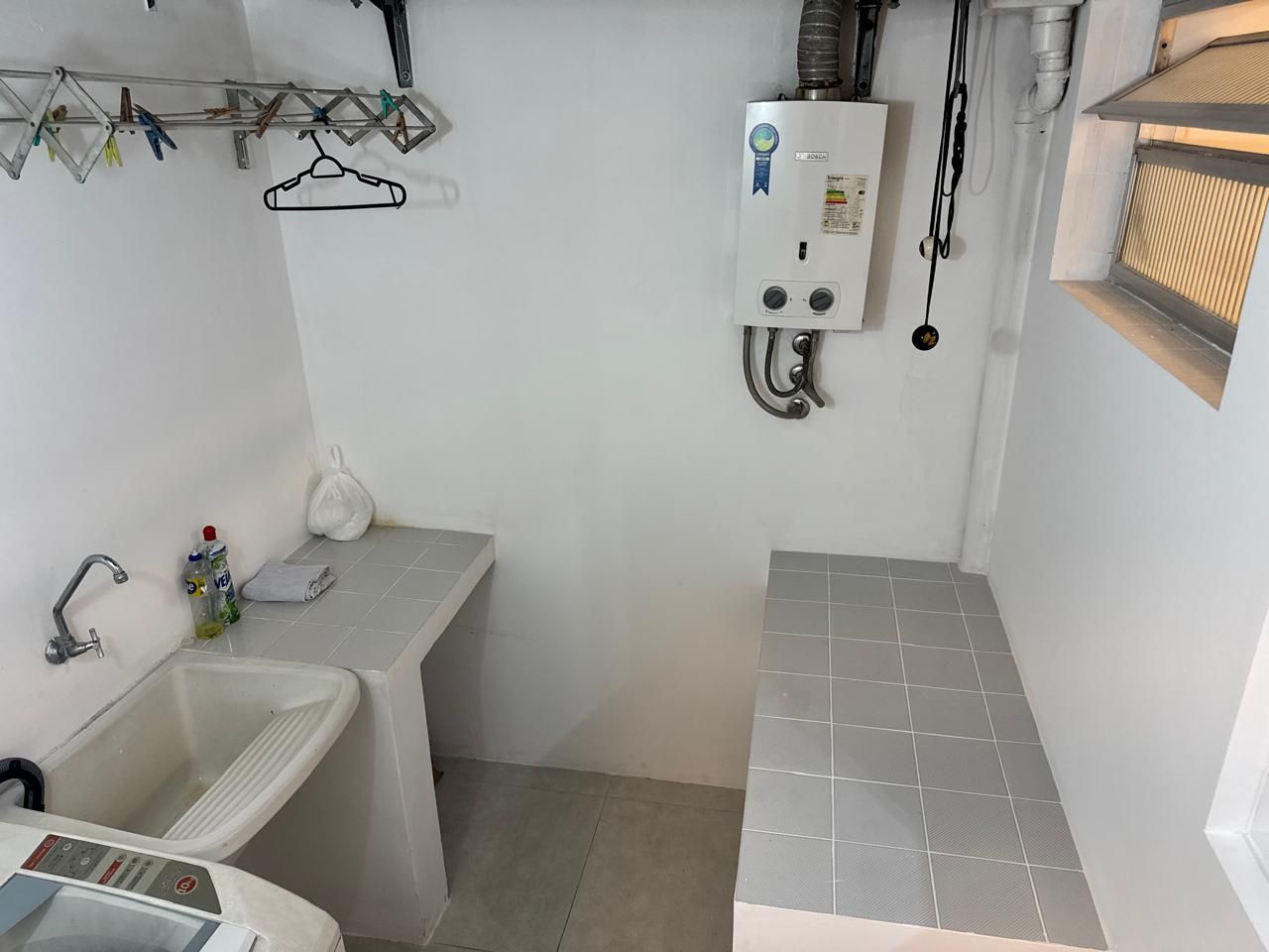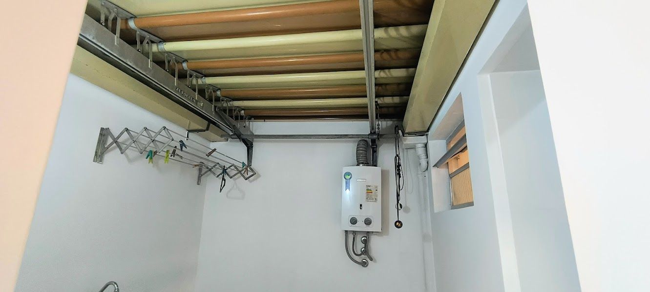 Água quente na conzinha e no banheiro com aquecedor de passagem instalado.