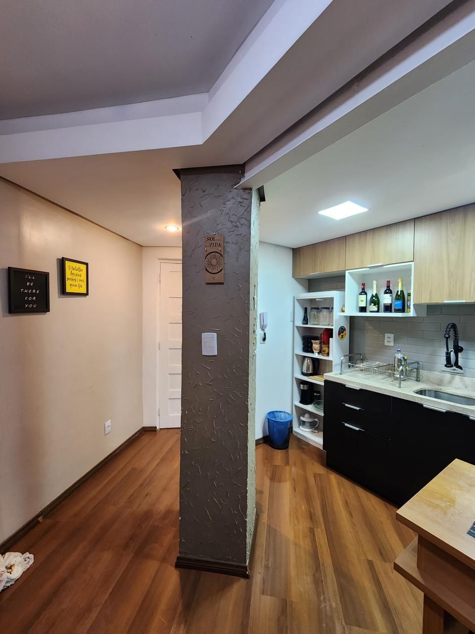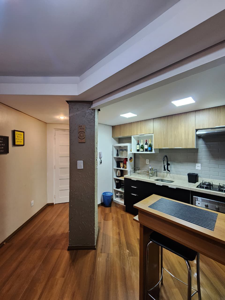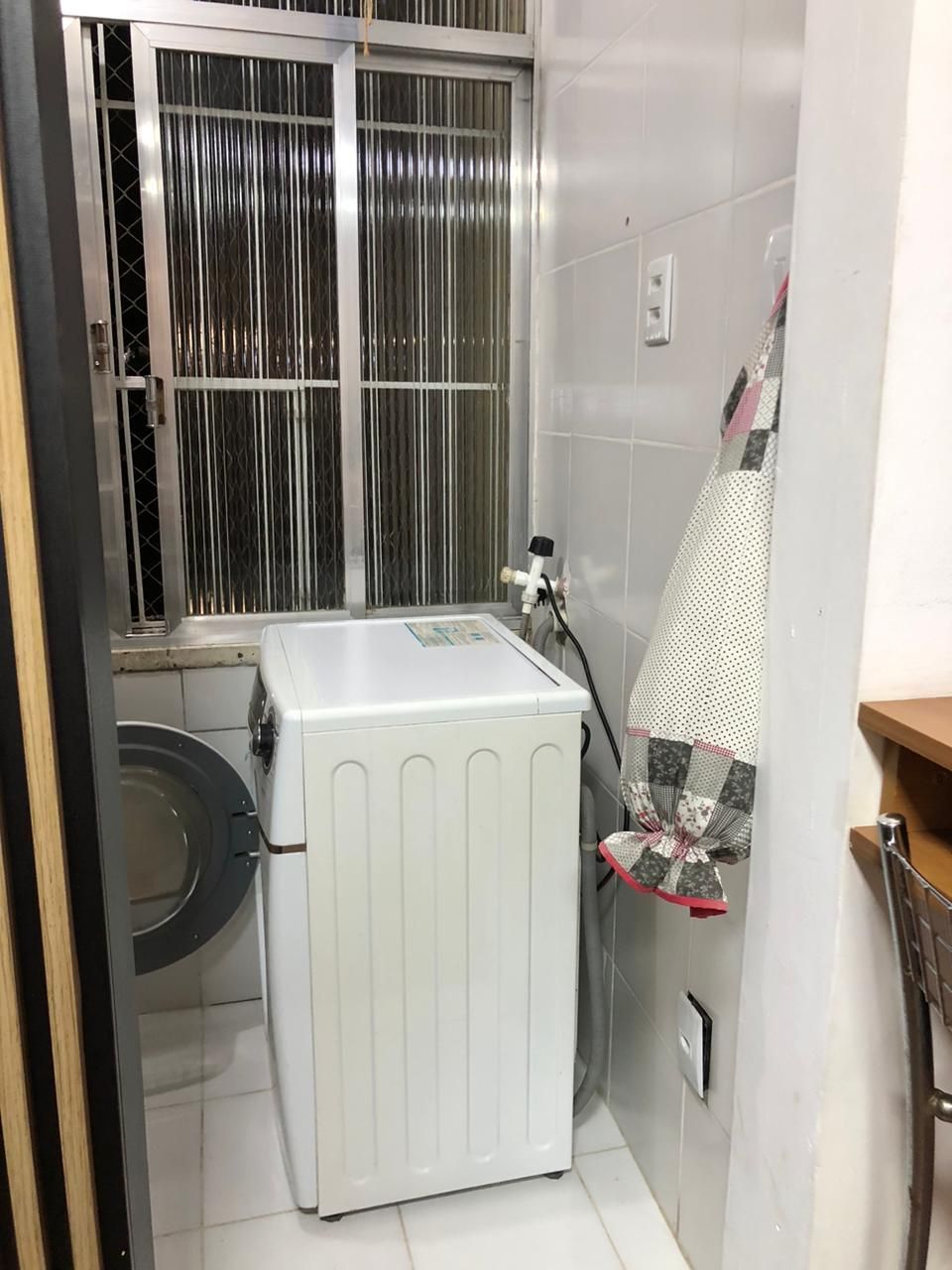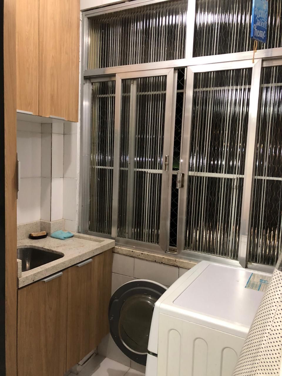 Fica no imóvel cozinha, a bancada e as banquetas, a lavanderia e o guarda-roupas. Imóvel todo com telas.