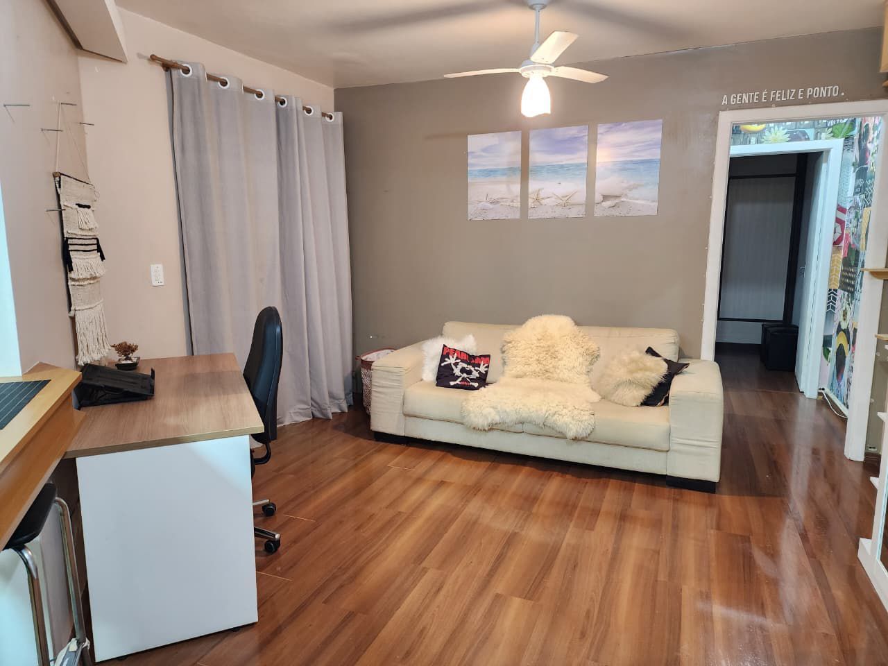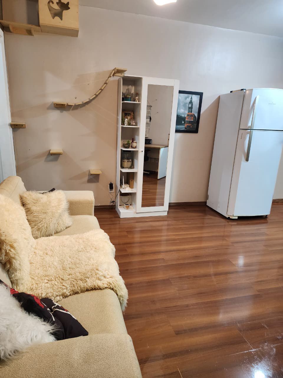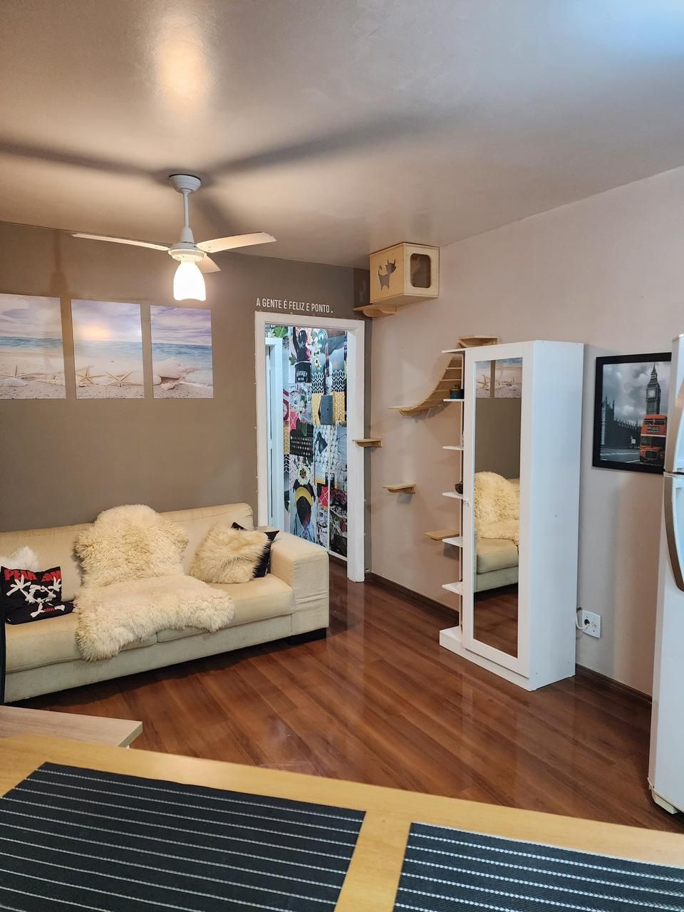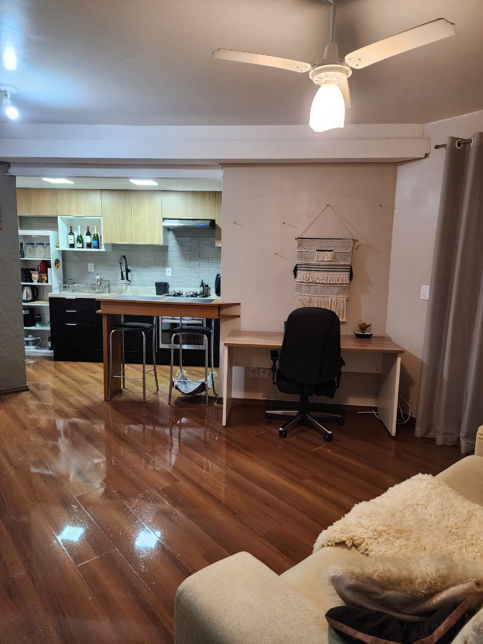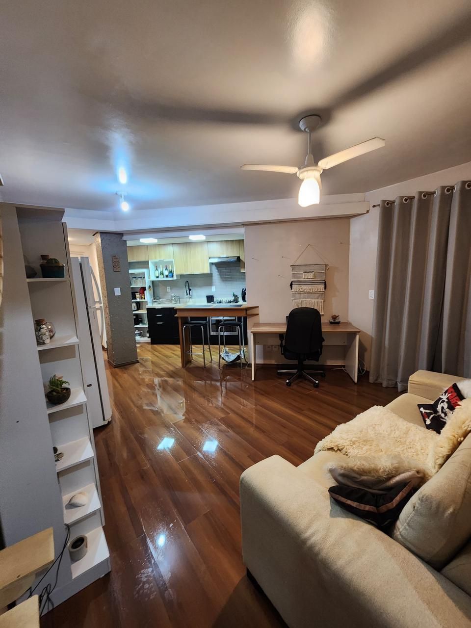 Fica no imóvel cozinha, a bancada e as banquetas, a lavanderia e o guarda-roupas. Imóvel todo com telas.