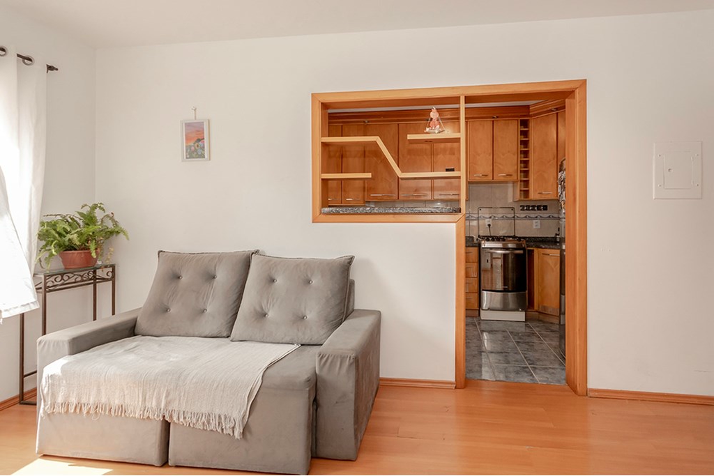 Apartamento com 59, 47 m², de fundos, 1º andar com 2 dormitórios com orientação Oeste , banheiro social, living com excelente iluminação natural e ventilação (orientação Norte), cozinha com passa pratos e armários planejados. 1 Vaga rotativa.