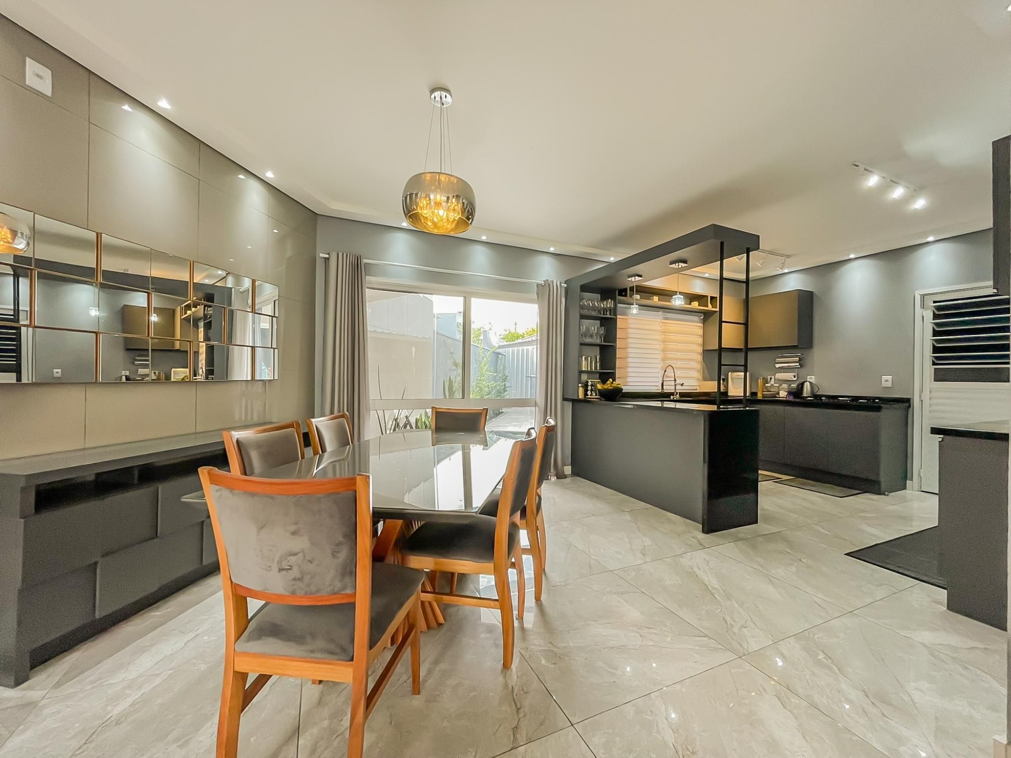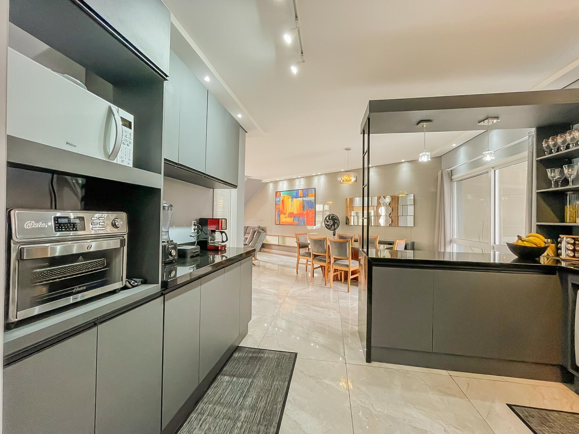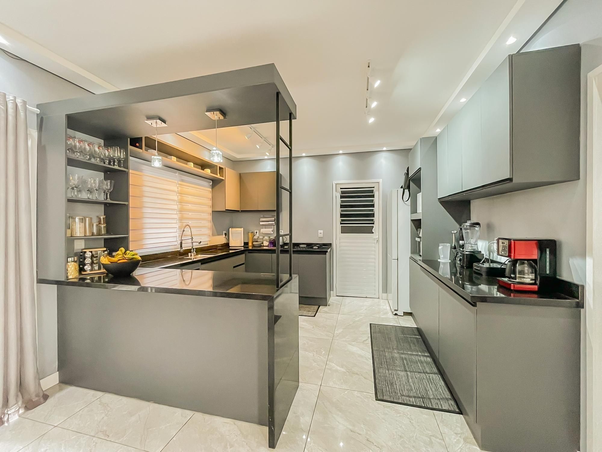 Residência com 3 dormitórios, sendo duas suítes, com espaço pra closet, um escritório, 5 banheiros, terraço com 80m2 e um espaço gourmet montado com cozinha, sala e banheiro, 2 vagas amplas, quarto de ferramentas, ampla área de serviço, pátio nos fundos com cobertura de proteção pra chuva.