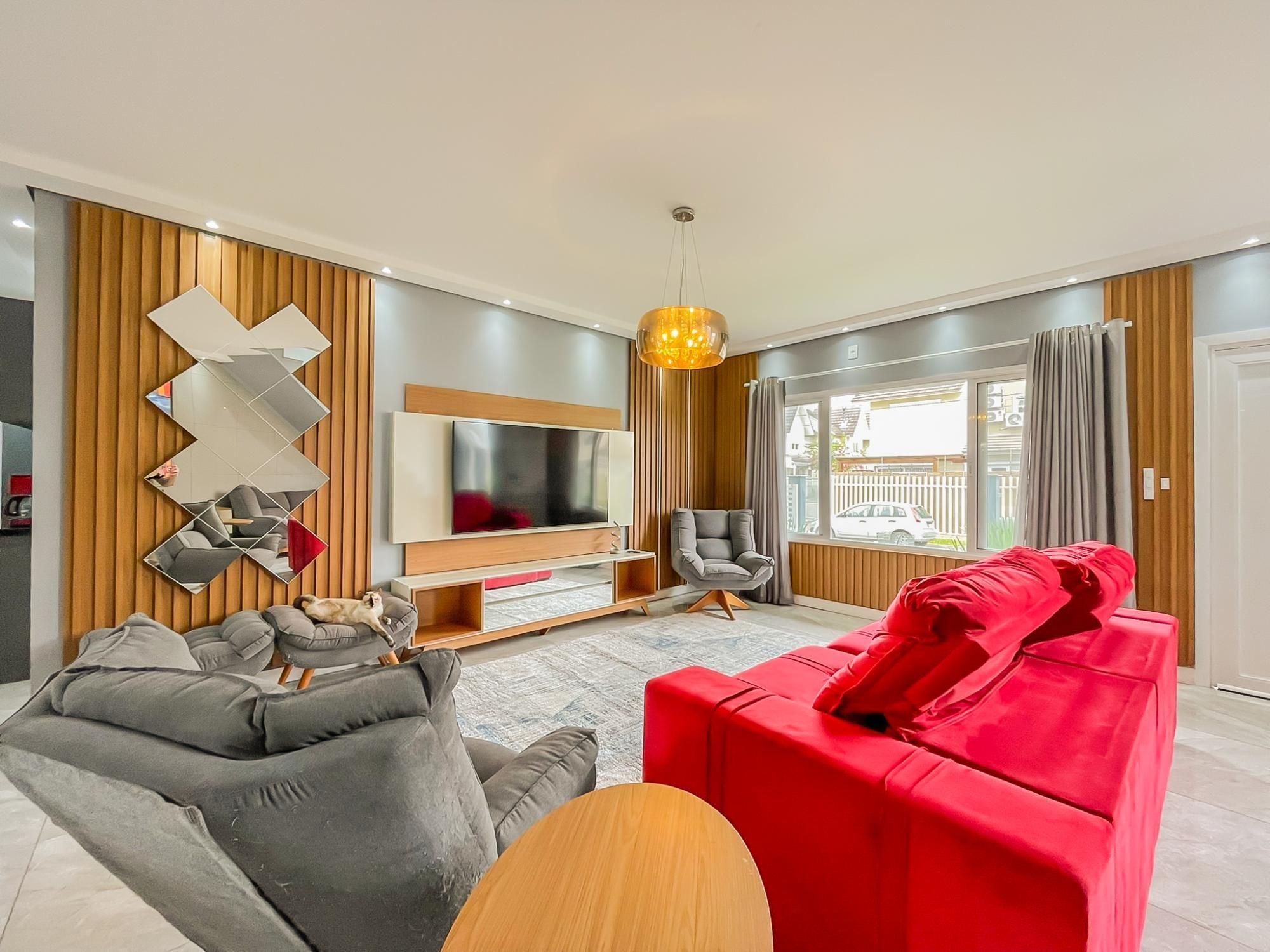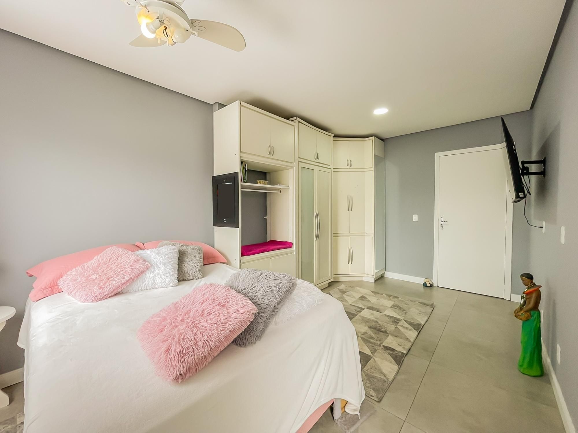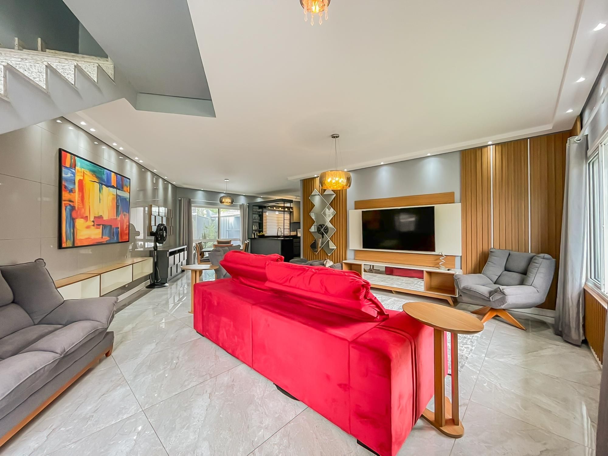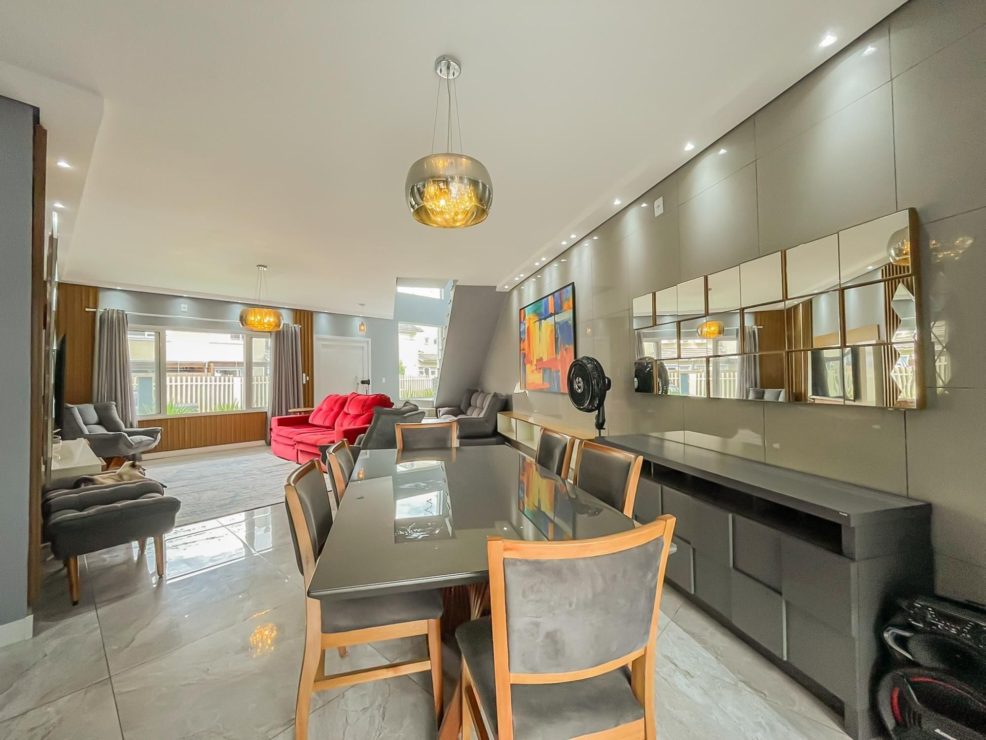 Residência com 3 dormitórios, sendo duas suítes, com espaço pra closet, um escritório, 5 banheiros, terraço com 80m2 e um espaço gourmet montado com cozinha, sala e banheiro, 2 vagas amplas, quarto de ferramentas, ampla área de serviço, pátio nos fundos com cobertura de proteção pra chuva.