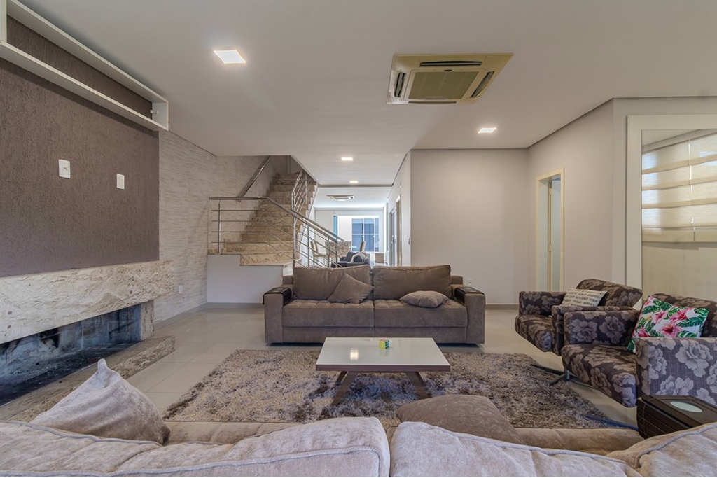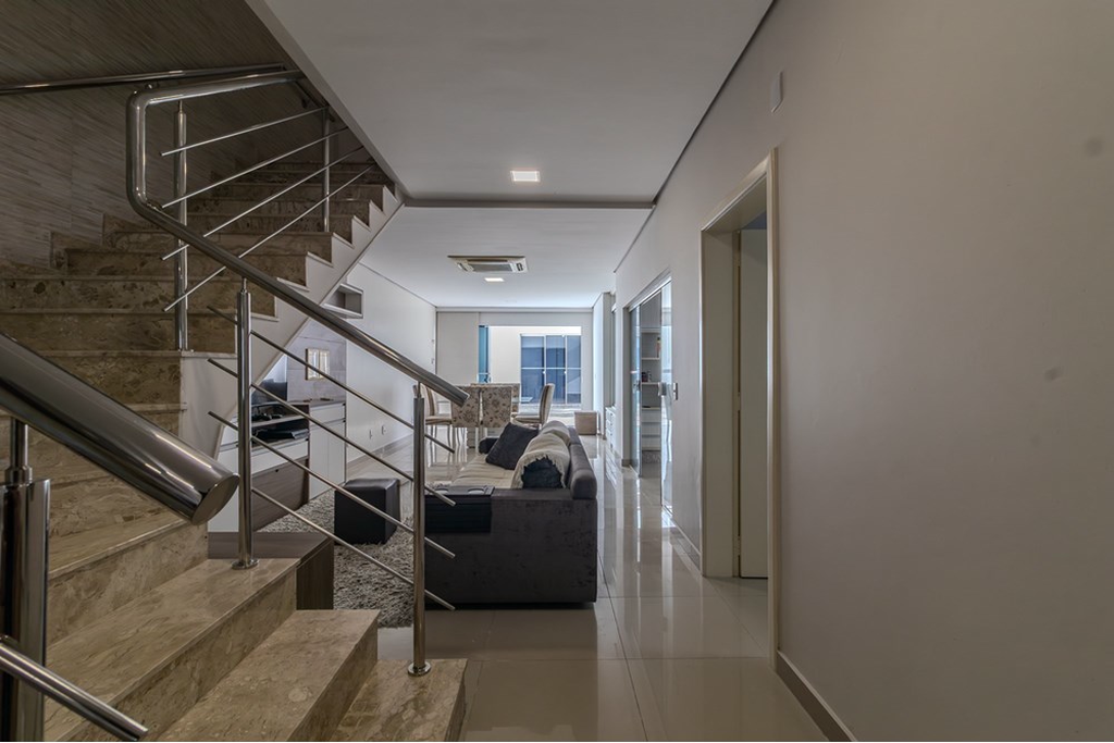 Ideal para quem valoriza o entretenimento, esta propriedade inclui churrasqueira no espaço gourmet com salão de festas perfeitos para receber convidados e terraço nos dormitórios, O ambiente contemporâneo integra as áreas de convivência harmoniosamente, enquanto recursos como ar condicionado central, painéis de energia solar instalados, closet e armários embutidos oferecem funcionalidade e estilo.
