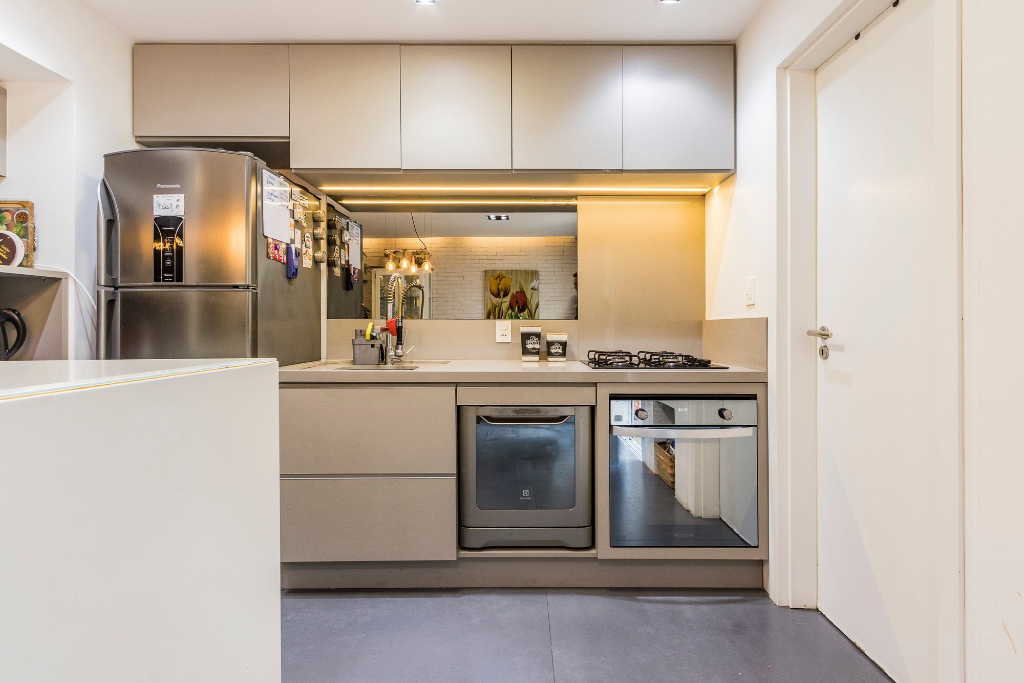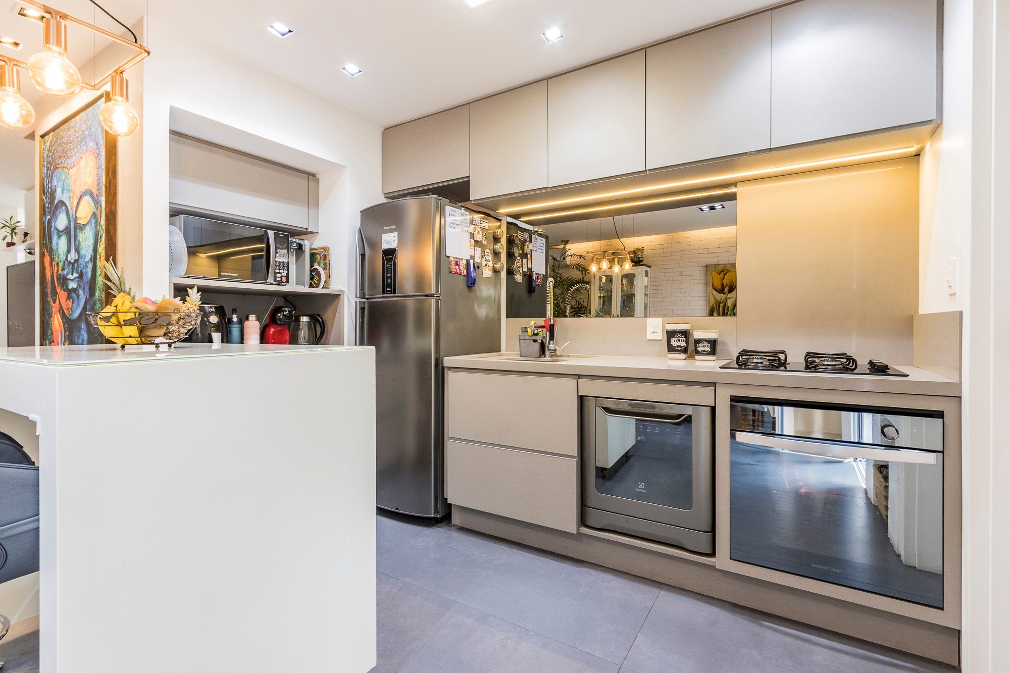 Projeto assinado por arquiteta, com móveis sob medida, acabamentos de qualidade, porcelanato no pavimento inferior, vinílico no superior, rodapés em todos os ambientes e iluminação planejada.