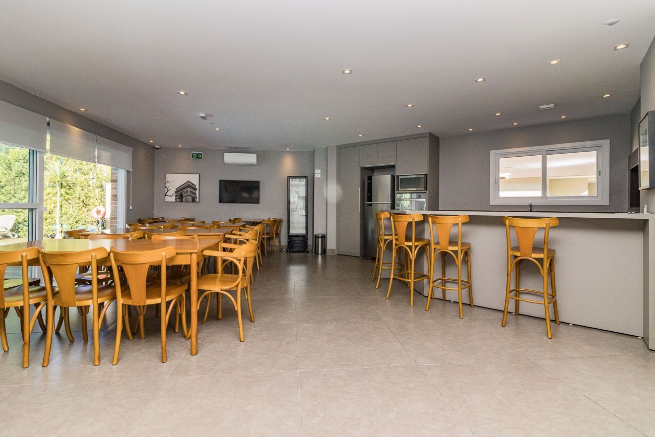 Infraestrutura completa com portaria 24h, piscina, espaço fitness, salão de festas, salão gourmet, quadra esportiva, playground e horta comunitária.